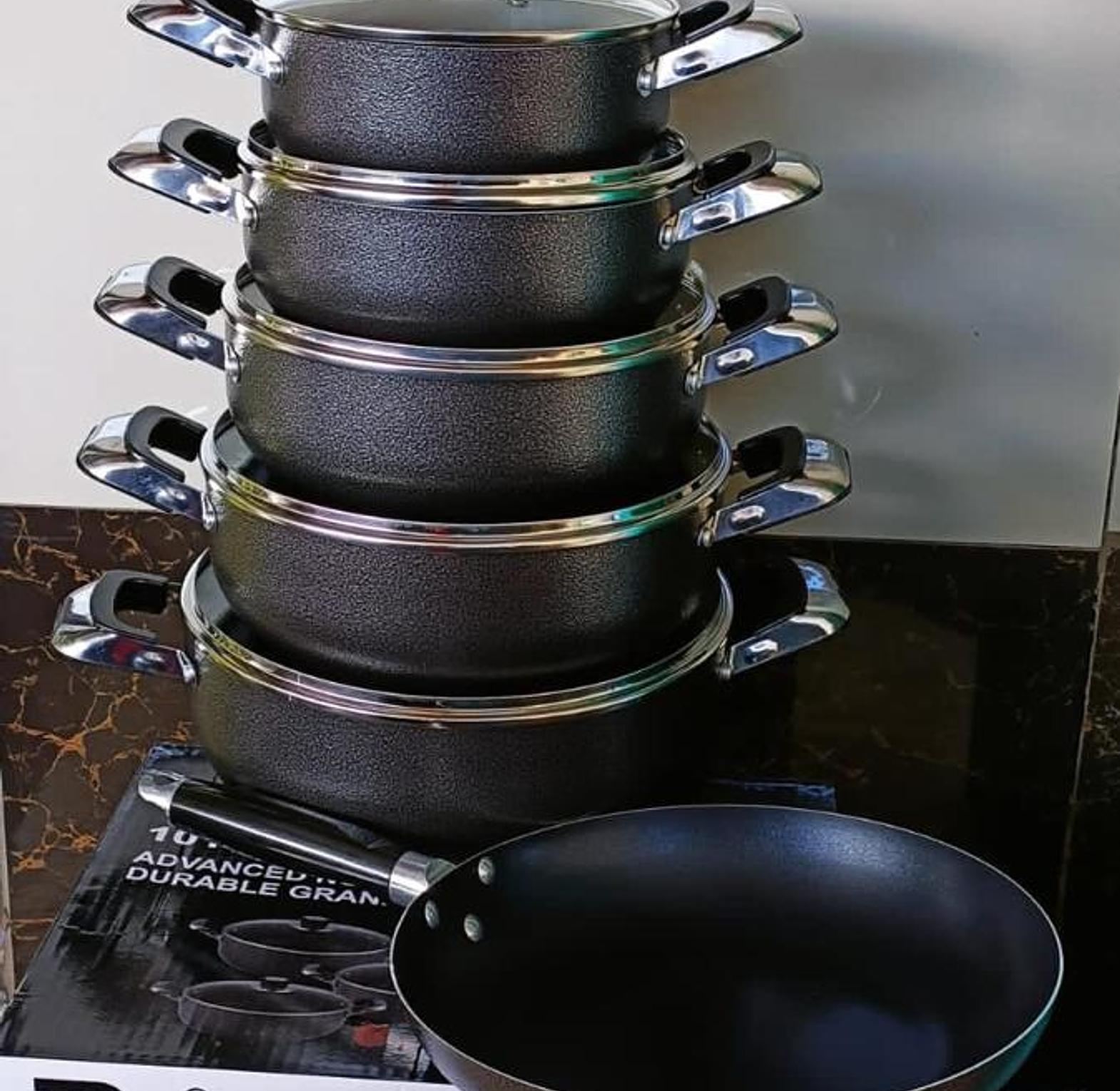 Non-stick Coating, Internally reinforced 2 coats technology Specially designed bottom for better heat efficiency Non-stick coating. 100% Non-Toxic Non-stick. Elegance look Durable Back lite handles for fire resistance, Easy to clean.