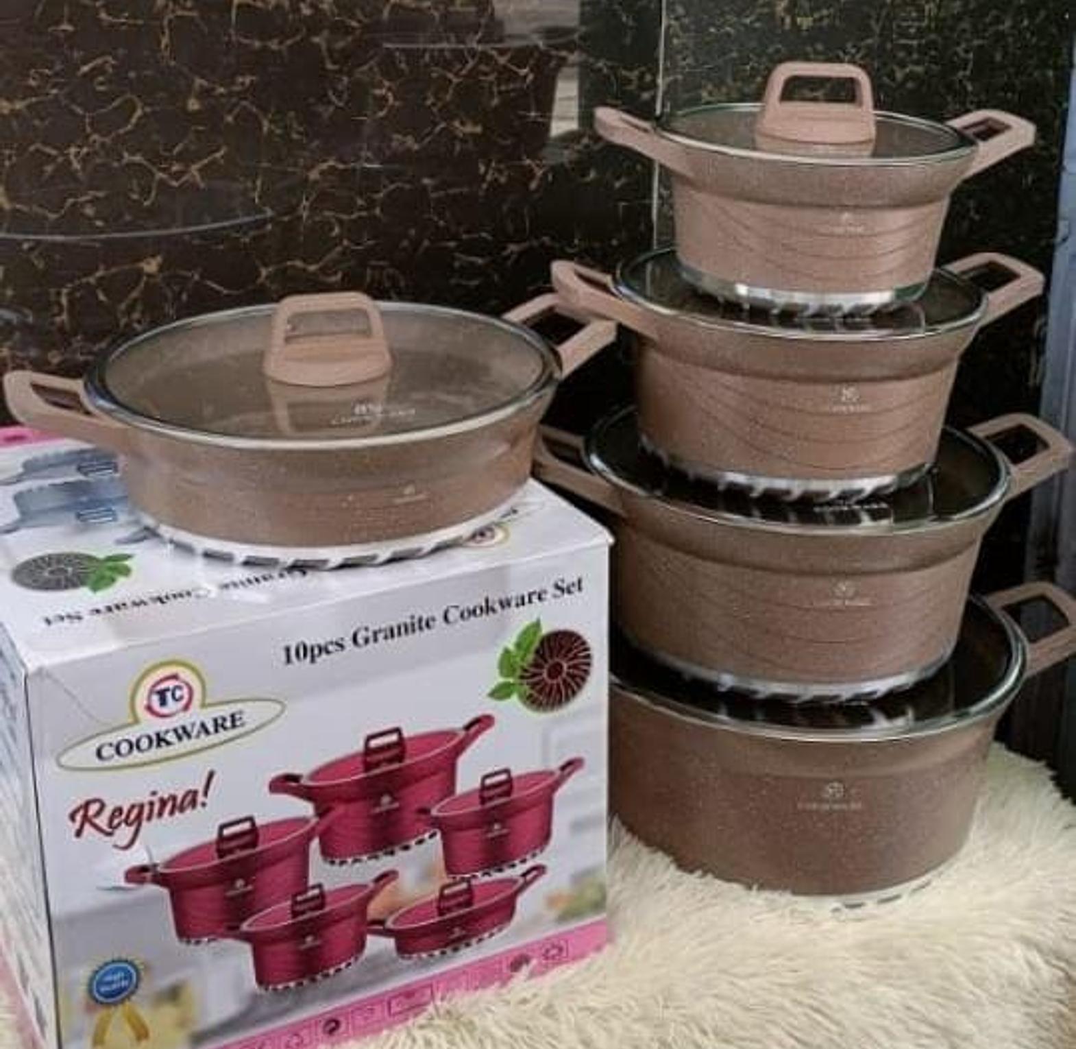 10pcs Heavy Granite Nonstick Cooking Pots Sufuria Set-brown