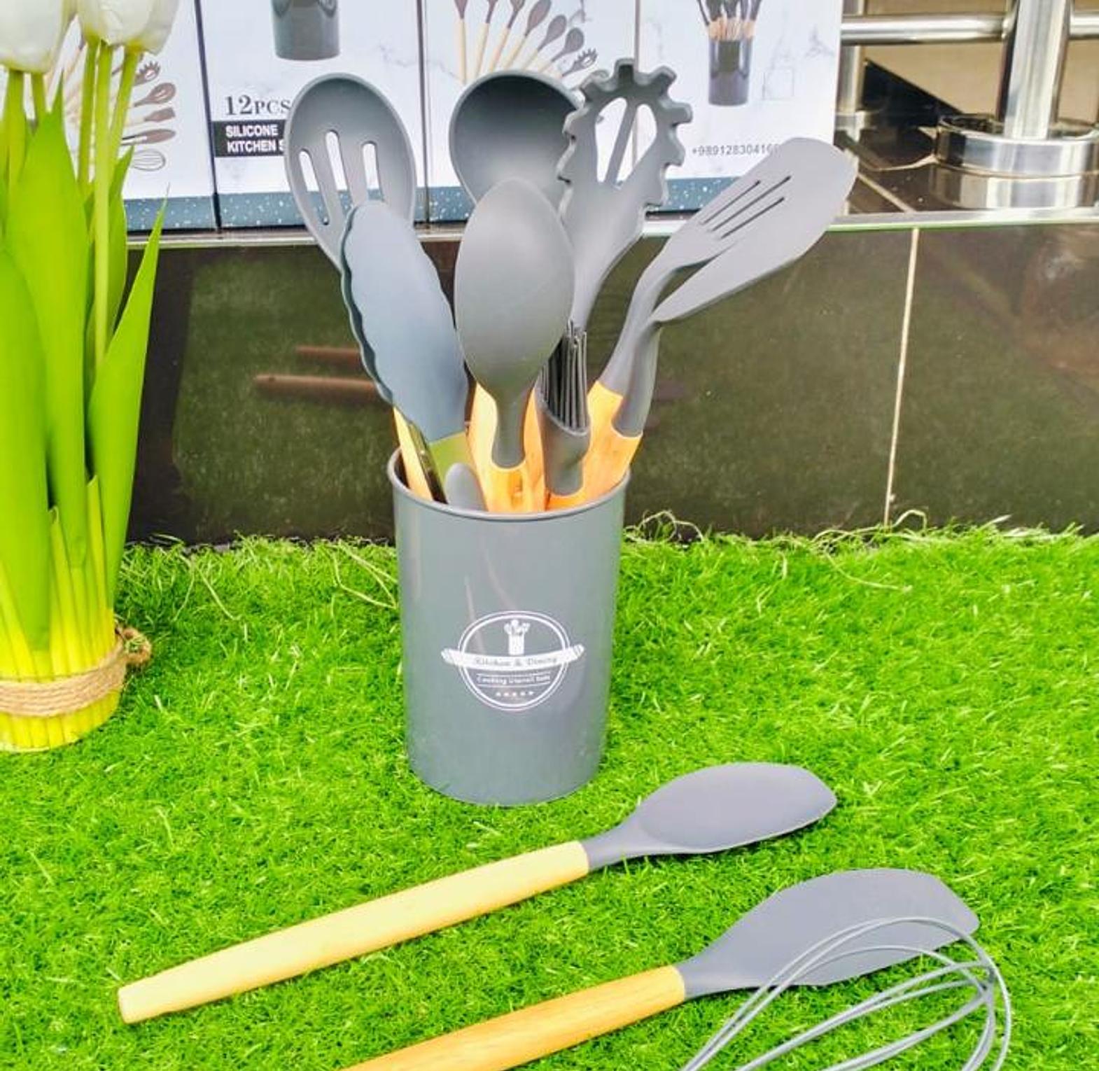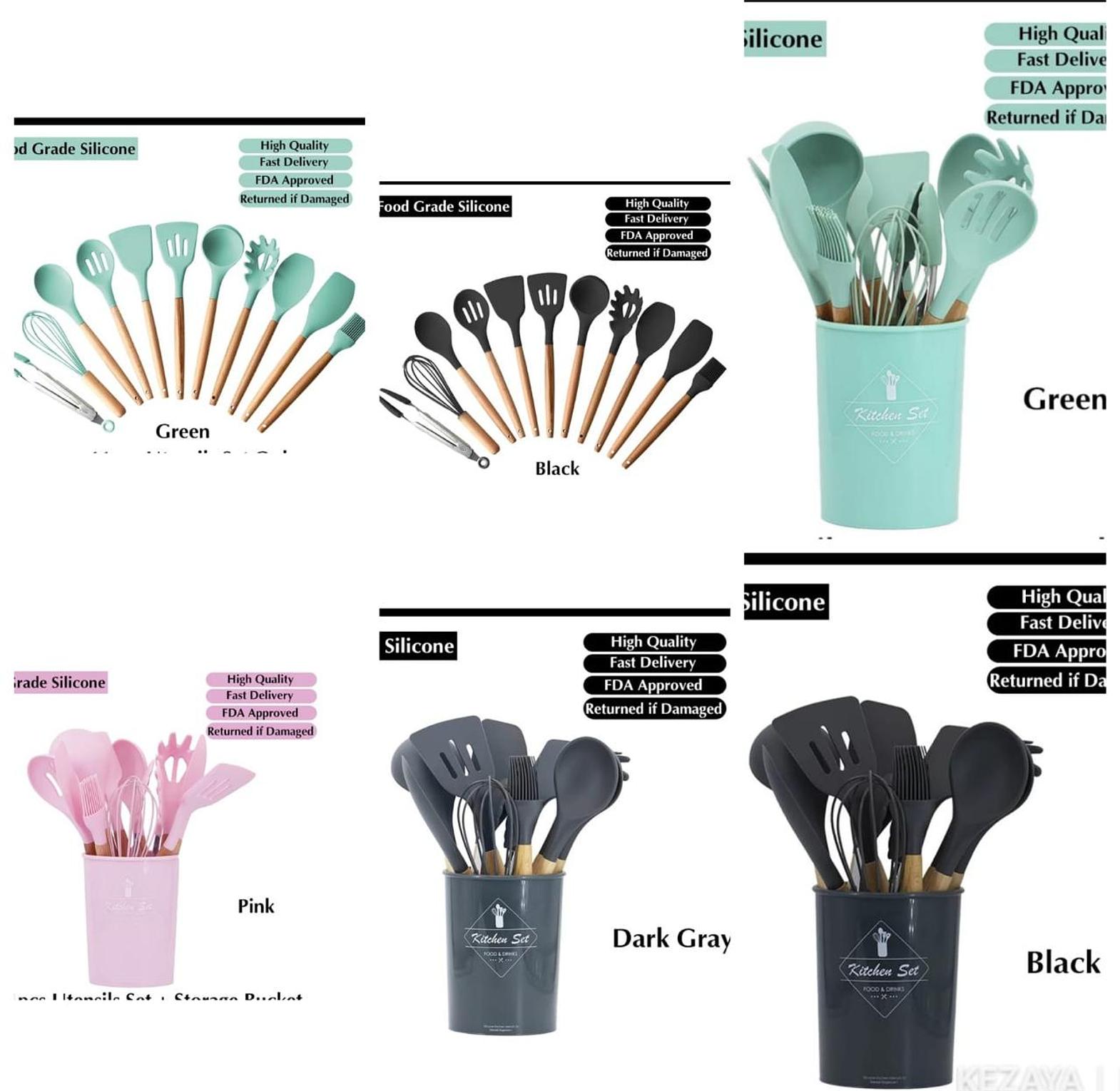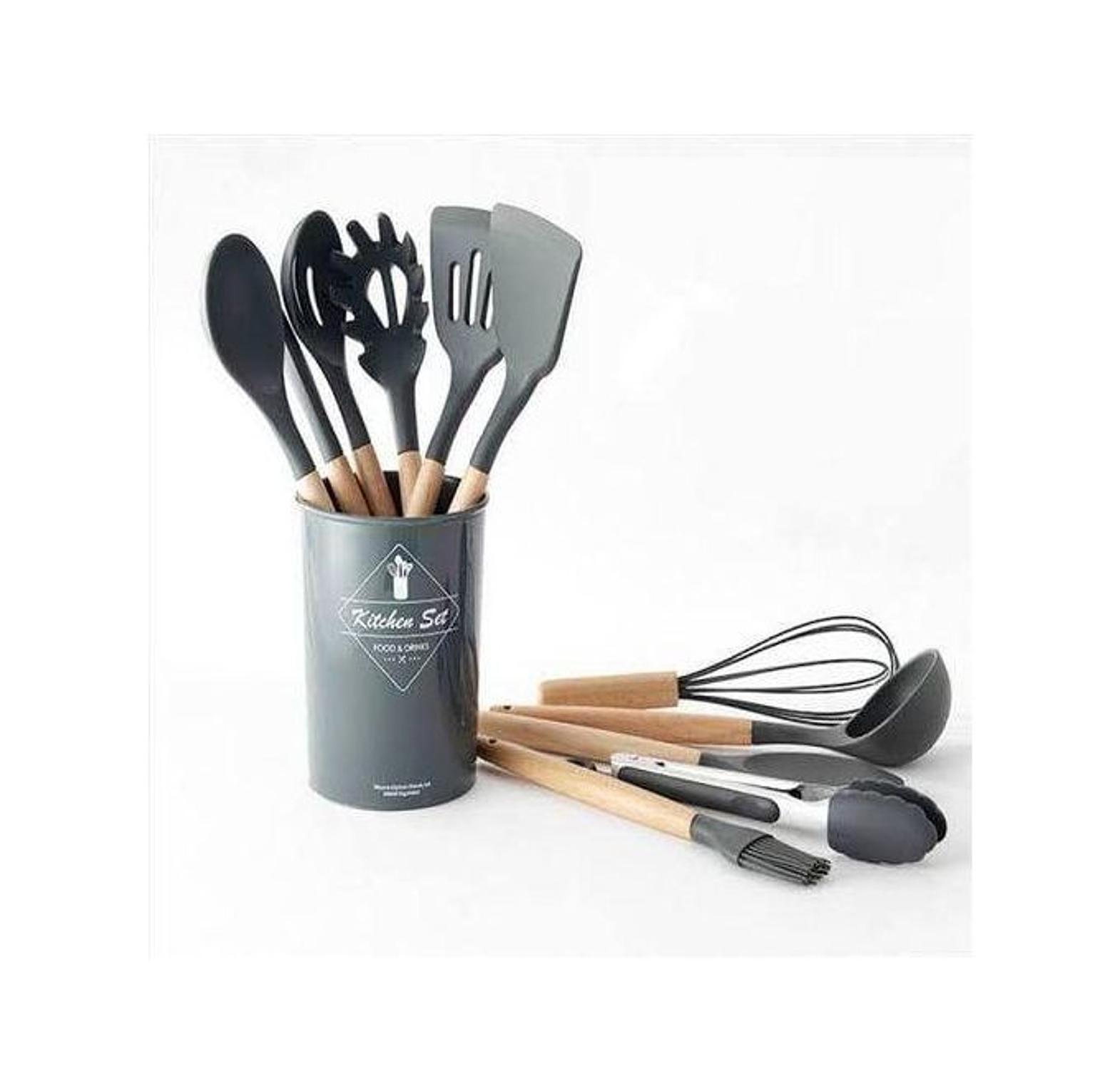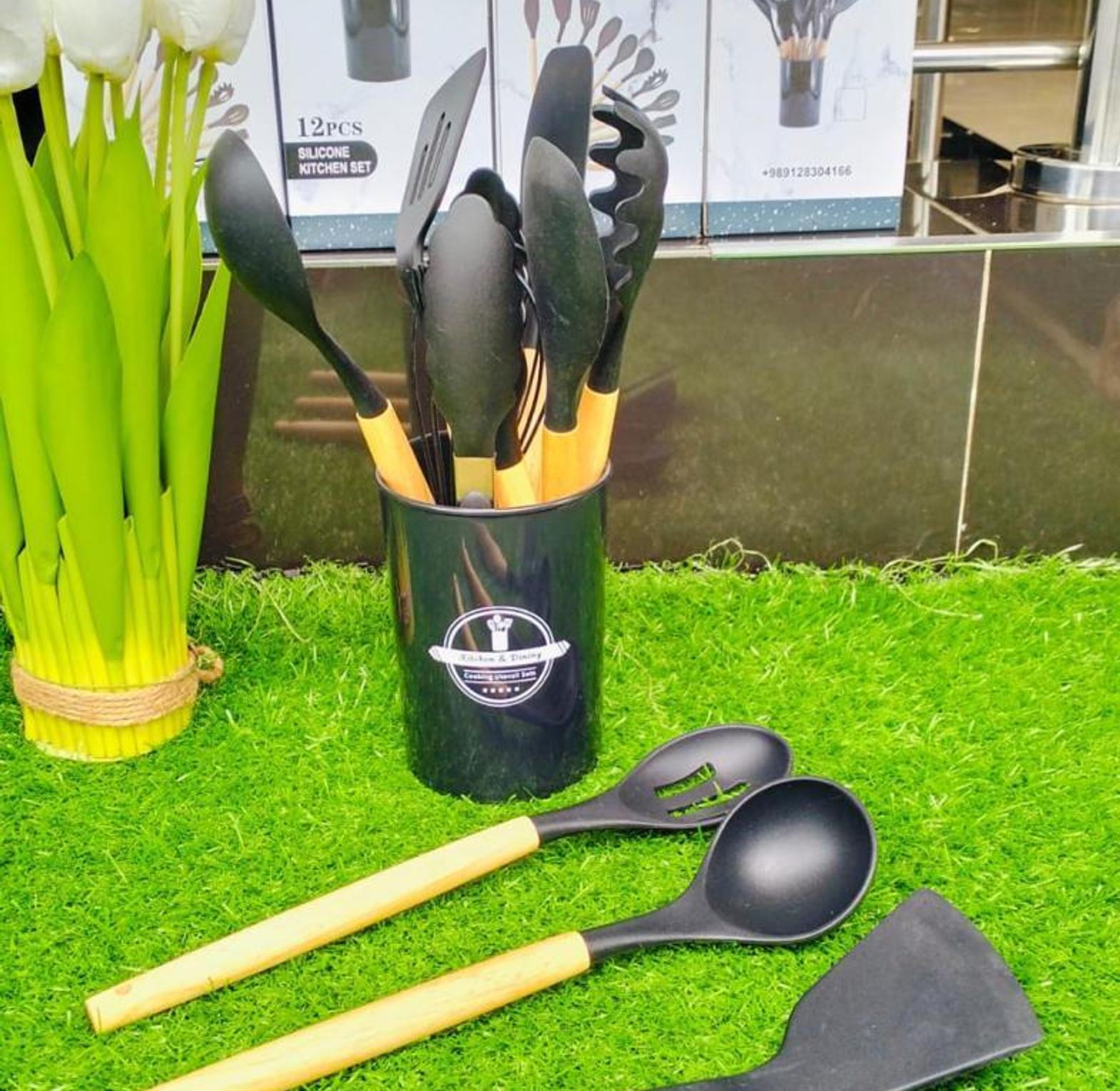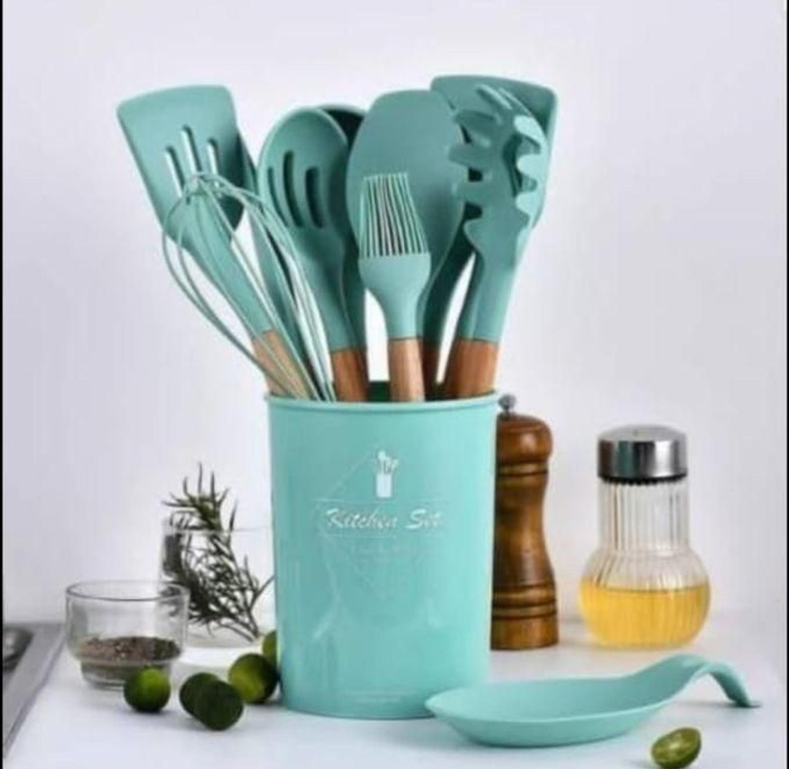KEY FEATURES 1. High-quality silica gel: Silicone kitchenware set is made of environmentally-friendly silicone safe and non-toxic materials. 2. Silicone has high strength and softness and it does not hurt the pan. 3. Wooden handle: Elm handle easy to grasp. 4. Wide temperature range cold and high temperature resistance. The temperature range [min. 40] to 230 degrees Celsius. 5. Recyclable and durable.