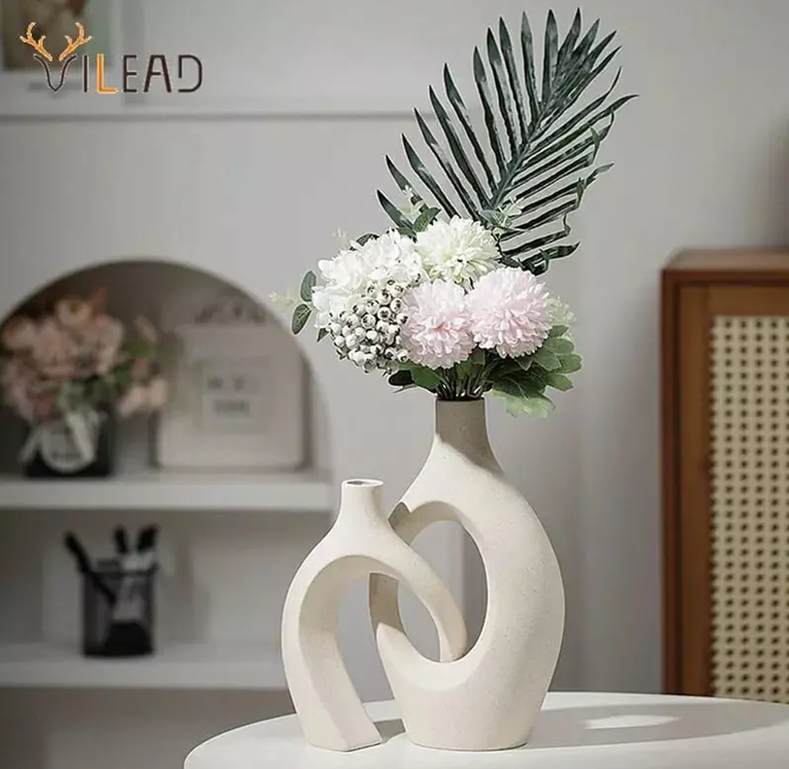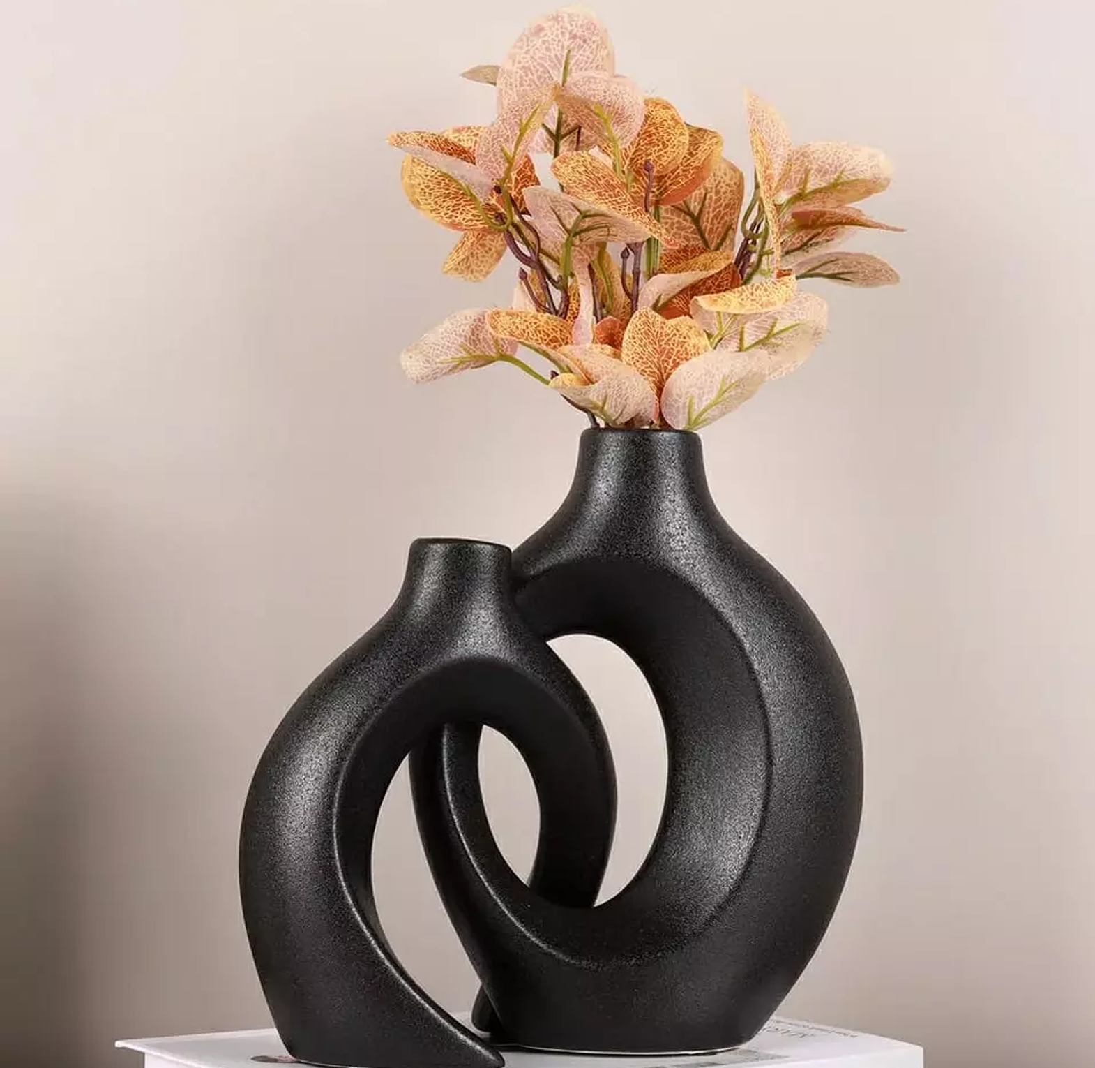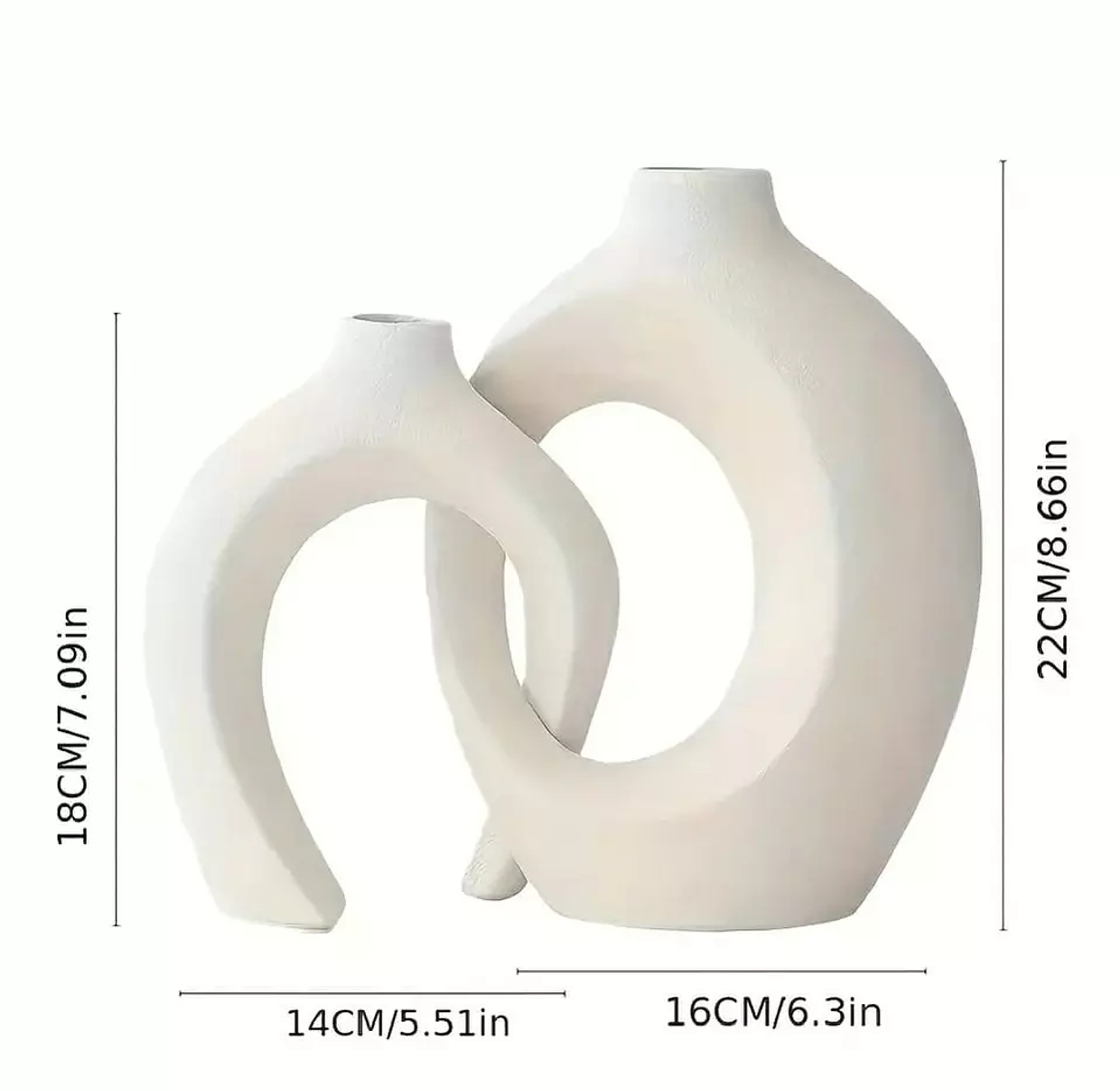 The 2-in-1 Nordic Doughnut Vase Set (14cm & 16cm) features a modern, minimalist design, perfect for adding elegance and style to any home décor.