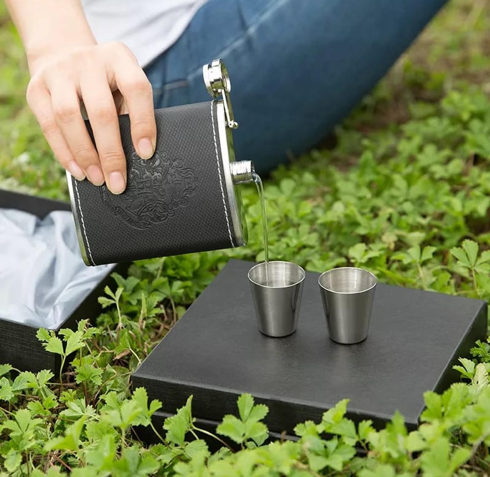 Key Features Great when given as a gift in this gift set that is sure to impress the recipient. comes with a funnel for spill free refills Suitable for outdoor camping, picnics, travel, drinking when fishing or drinking with family Quality assurance This giftset is a must have.