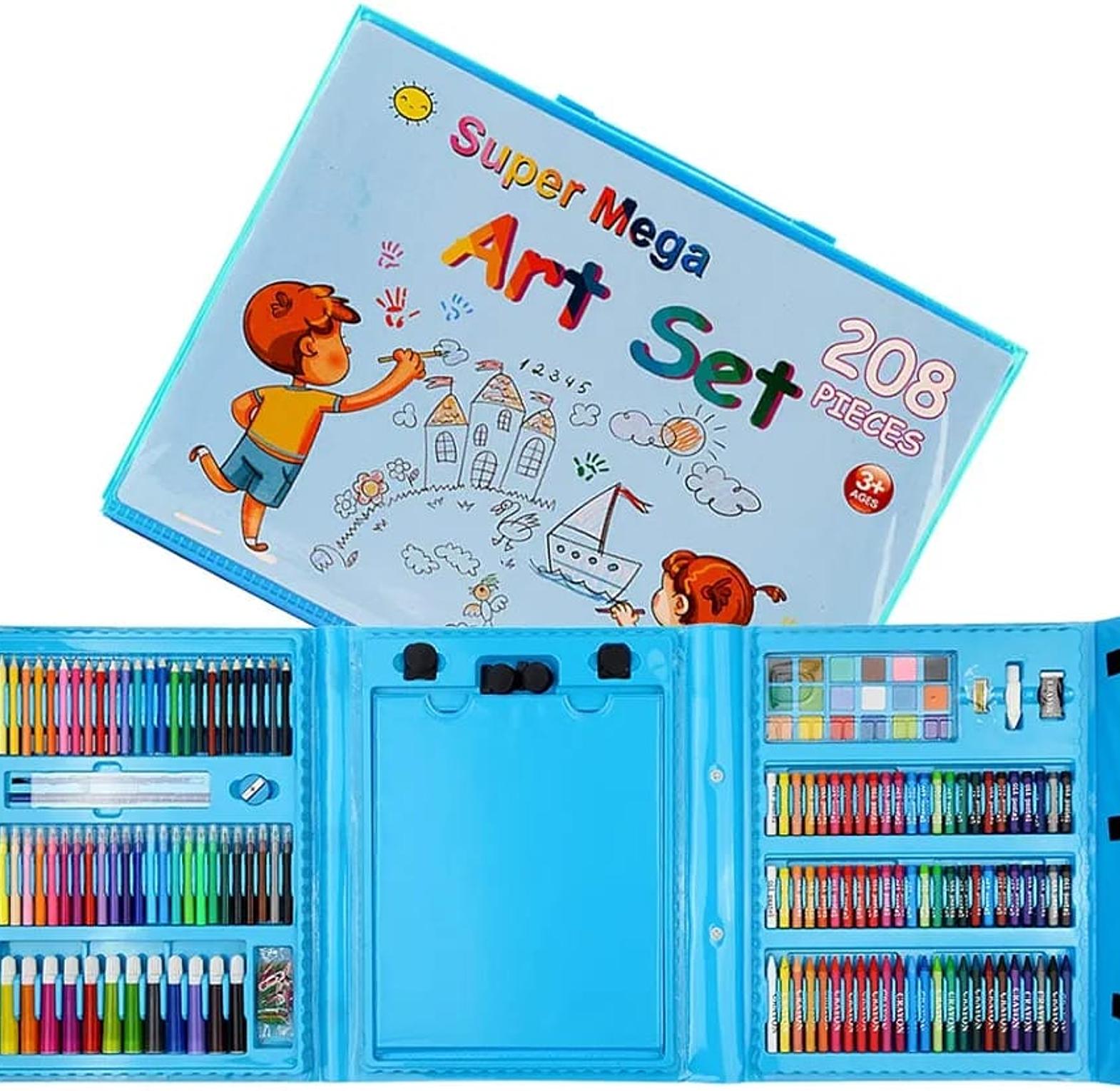 48 x Oil Pastels 24 x Crayons 24 x Color Pencils 18 x Watercolors 24 x Mini Markers 12 x Markers 10 x Sheets Of White Paper 4 x Large Clips 3 x Paper Clips 1 x Pencil 1 x Paint Brush 1 x Ruler 1 x Eraser 1 x Palette 1 x Pencil Sharpener 1 x Sponge 1 x White Water Colour Tube 1 x Threefold Organizer Carry Case