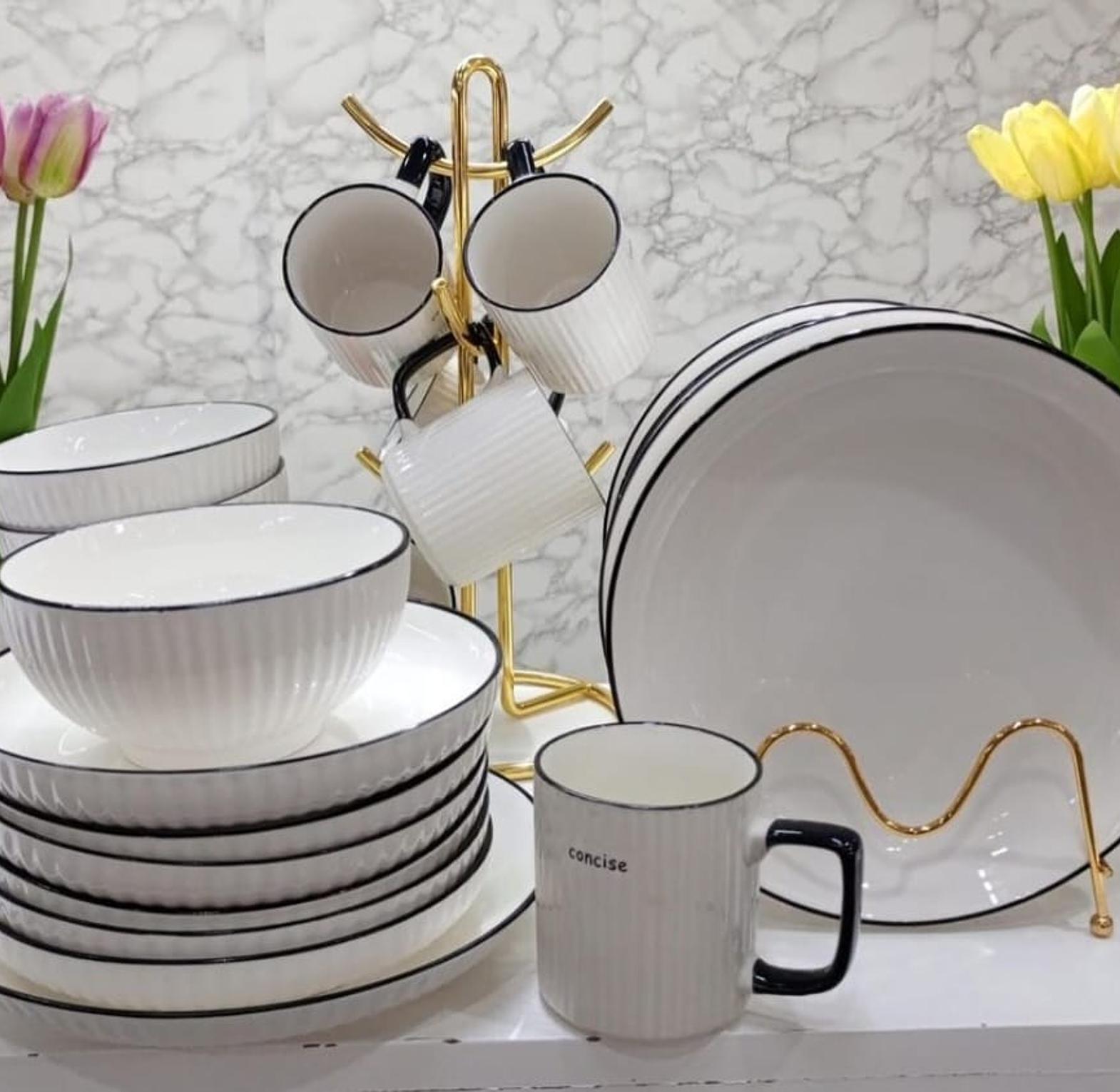 24 pcs Japanese dinner sets (6 Dinner plates, 6 side plates, 6 bowls & 6 cups)