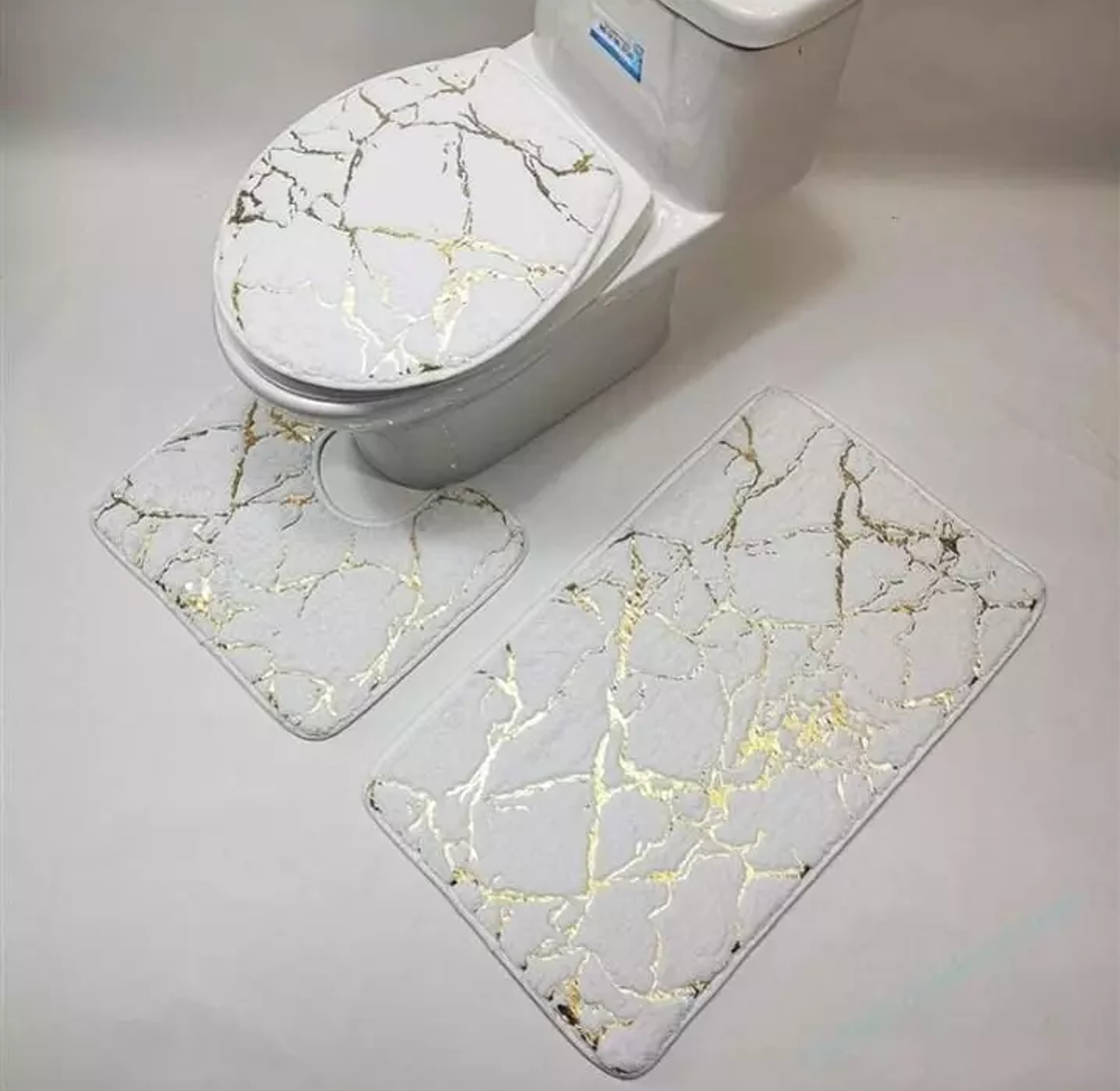 The 3-in-1 Bathroom/Toilet Mat Set offers a stylish, non-slip, and absorbent solution for a clean, comfortable, and slip-free bathroom experience.