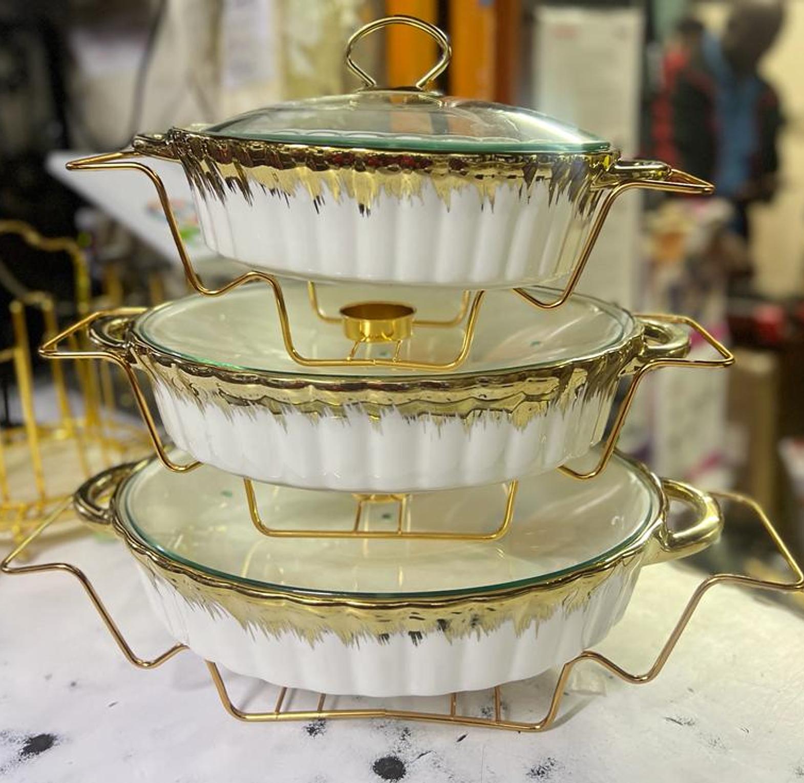 3 pcs ceramic chaffing dishes 3.5 ltr , 2.8 ltr and 2 ltr