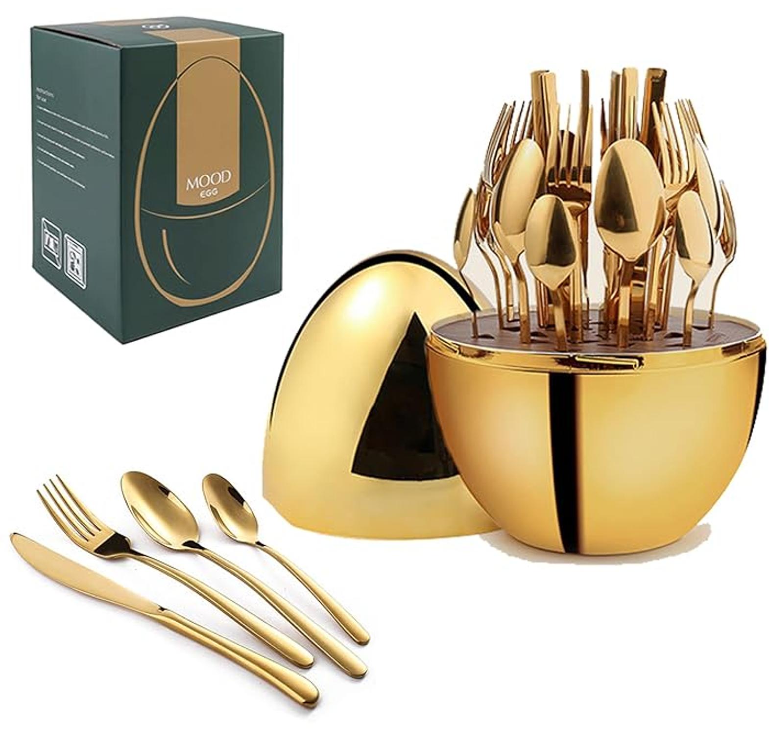 36pc Executive Egg-Shaped Cutlery Set-gold