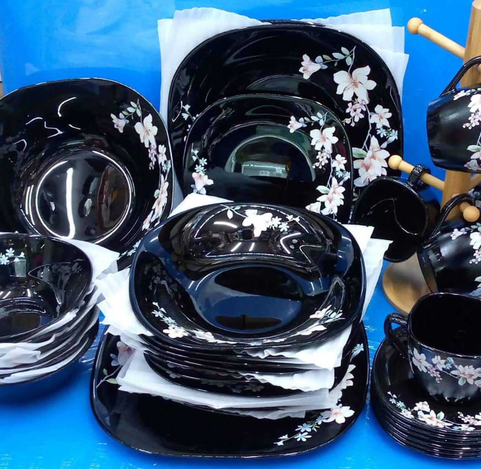 6 Dinner Plates,6 Side Plates, 6 Soup Bowls, 6 Soup plates, 6+6 Cup & Saucer , 1 Serving Bowl , 1 Platter.