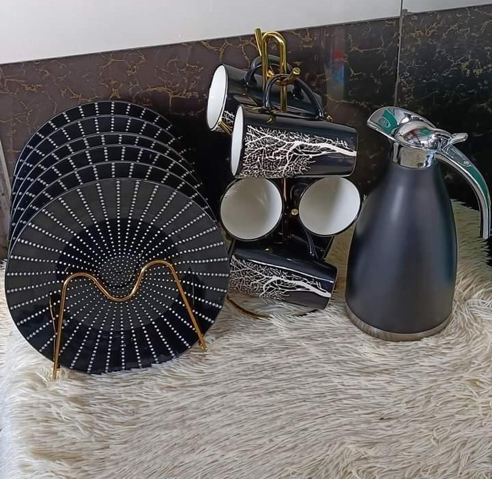 Key Features 2L UNBREAKABLE FLASK, 6 DINNER PLATES, 6 CUPS Strong mugs Made with thick comfortable grip ergonomic handles Quality Chip resistant ceramic material Classic design fit any kitchen style Perfect for Home or Restaurant use ,indoor or outdoor use.