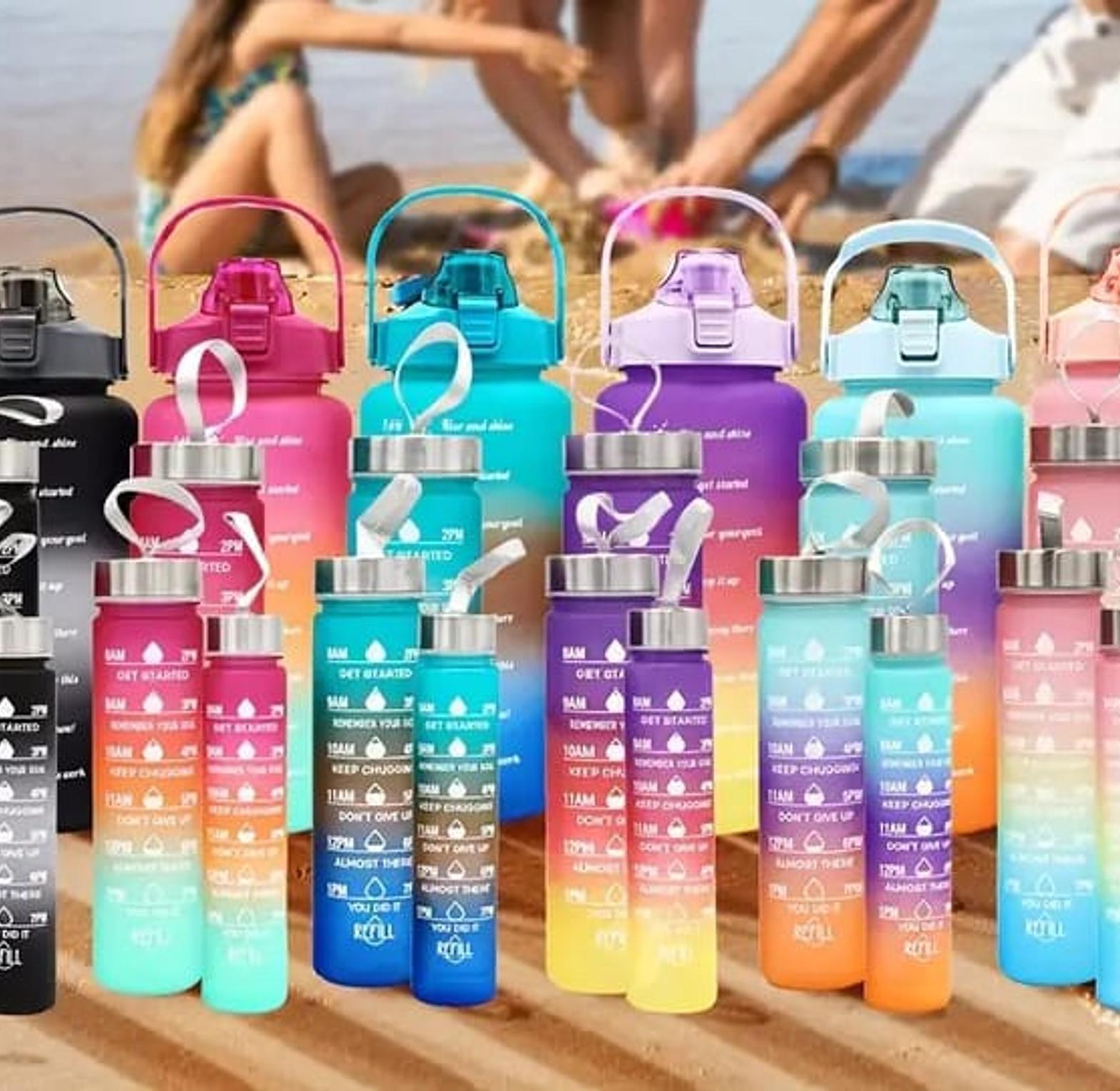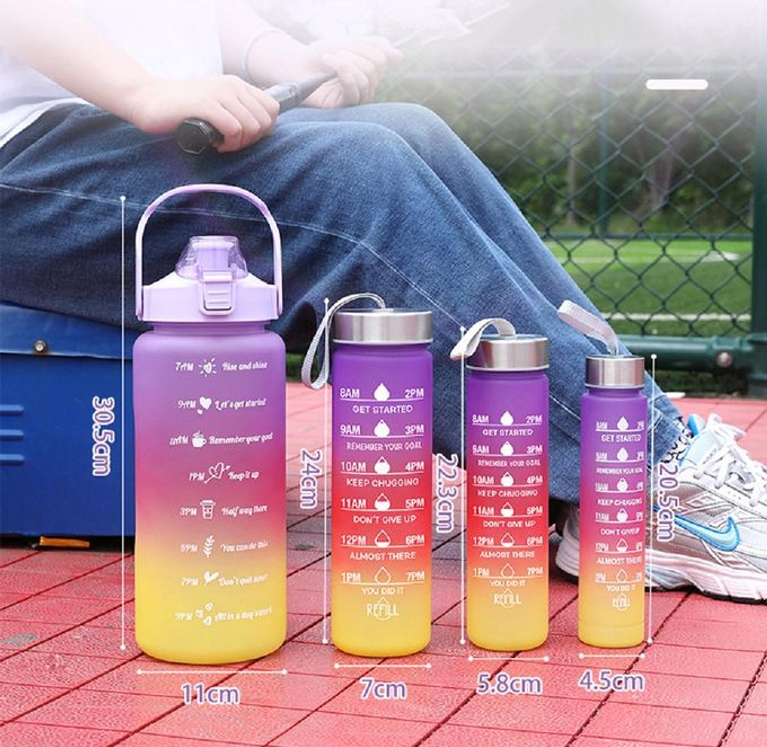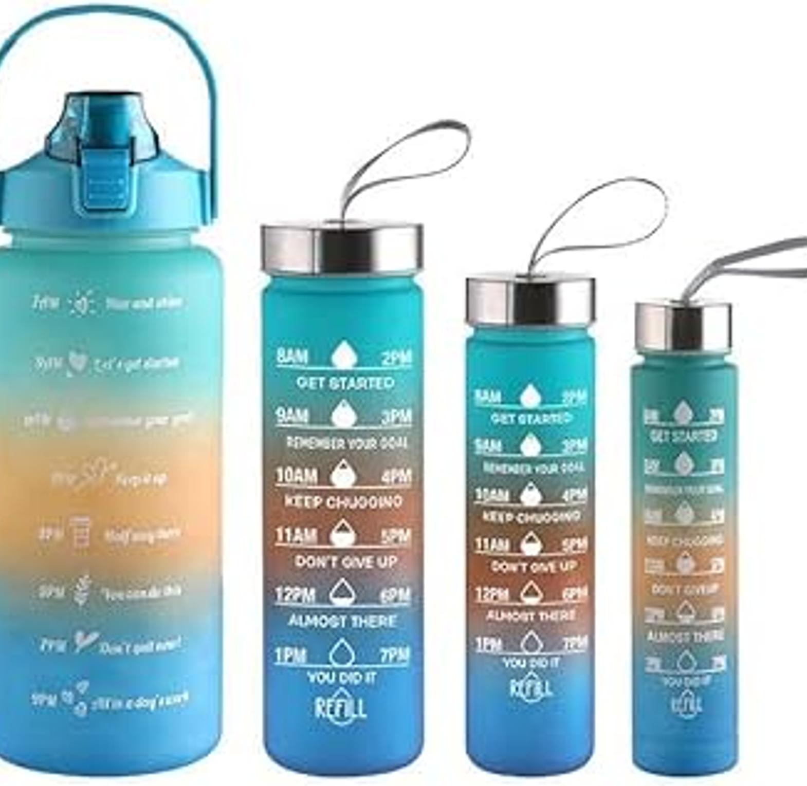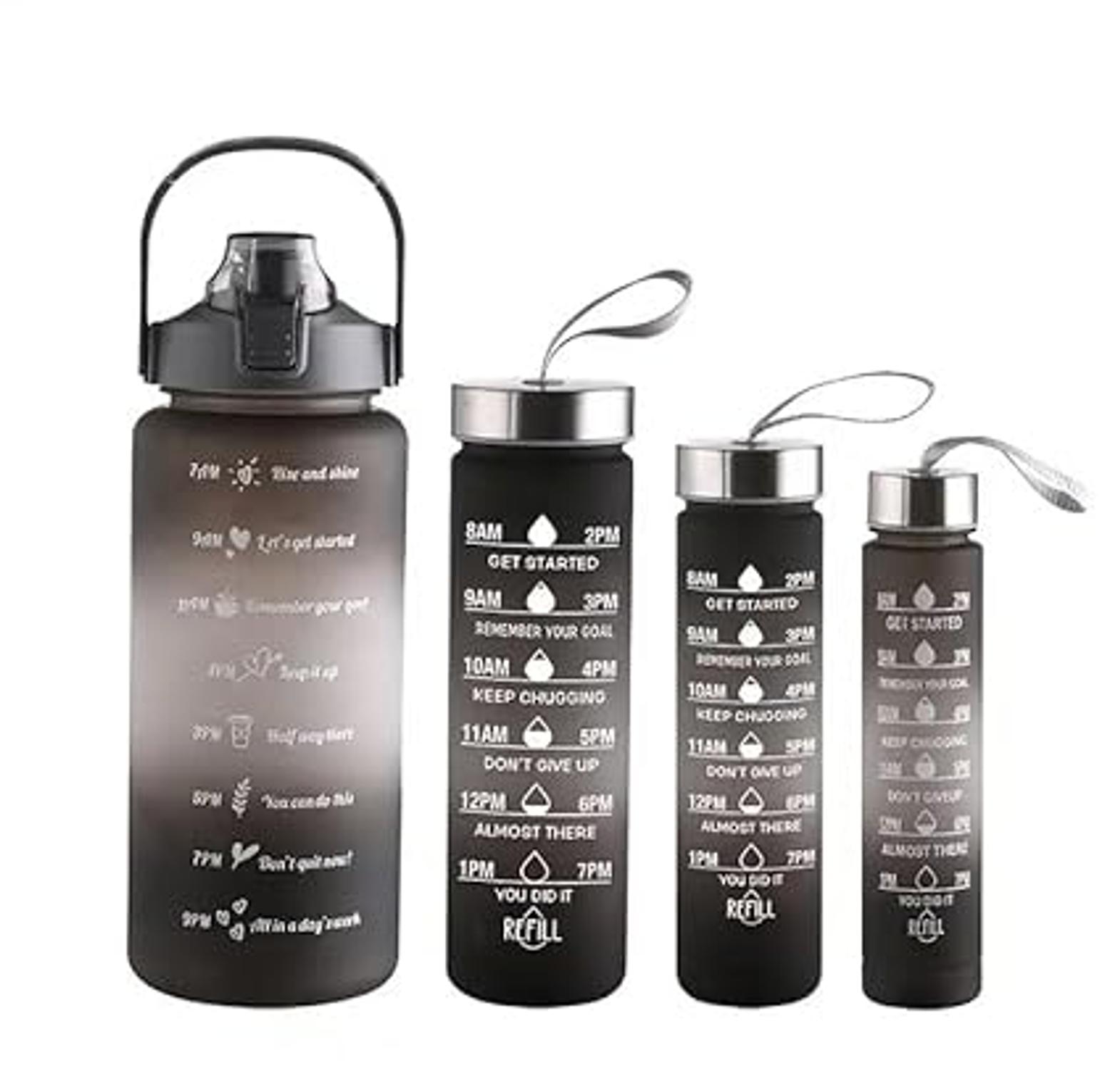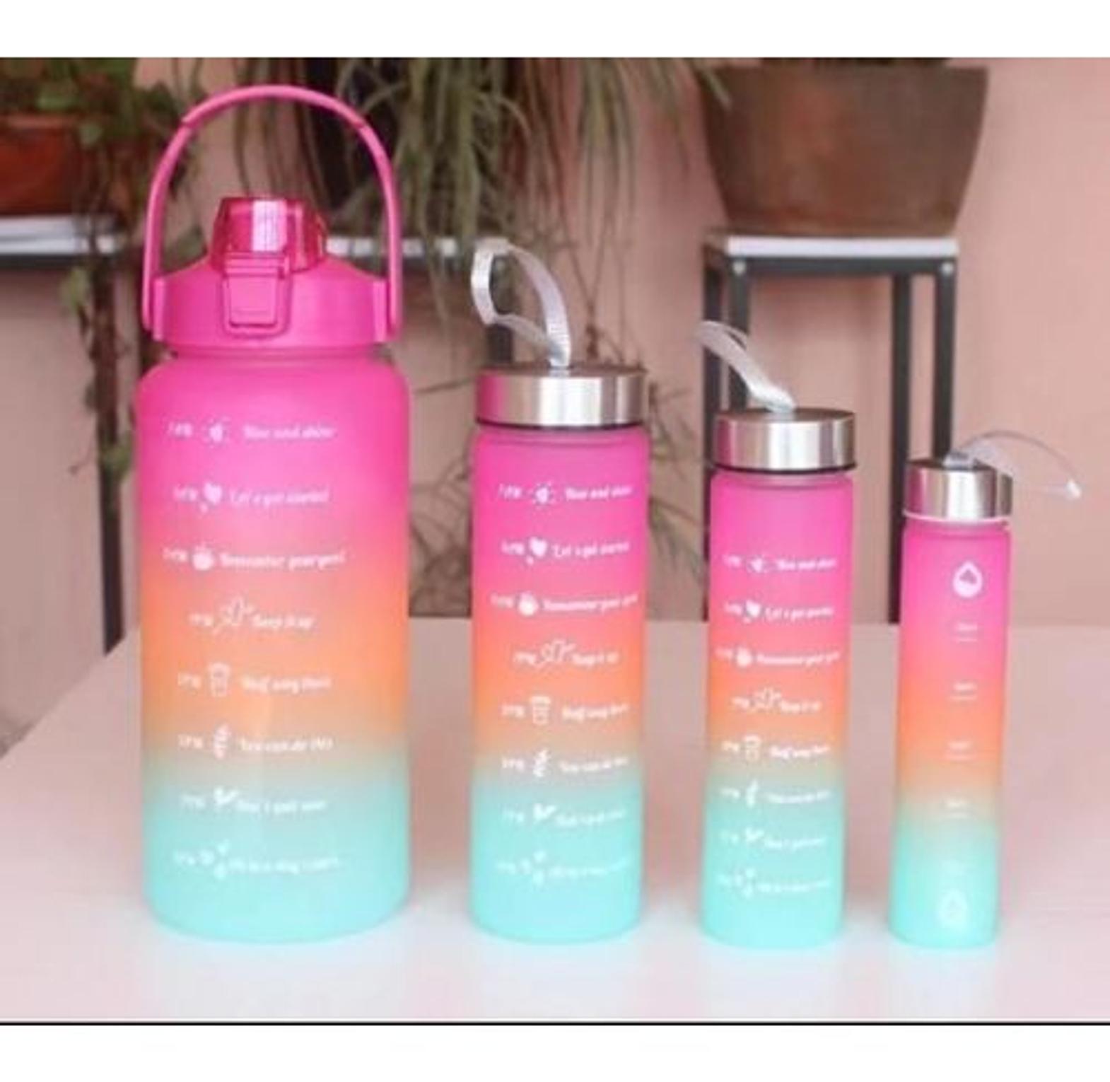 KEY FEATURES 4piece set of super capacity, press the spring cover and open the cover with one button, convenient and fast. Edible silicon straw, small mouth anti-choking design, drinking immediately after lifting. It is suitable for outdoor outing and fitness exercise, with fashionable bottle body and convenient carrying. Different capacity to meet the needs of different occasions.