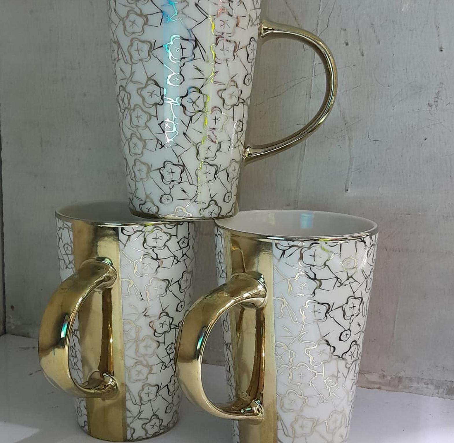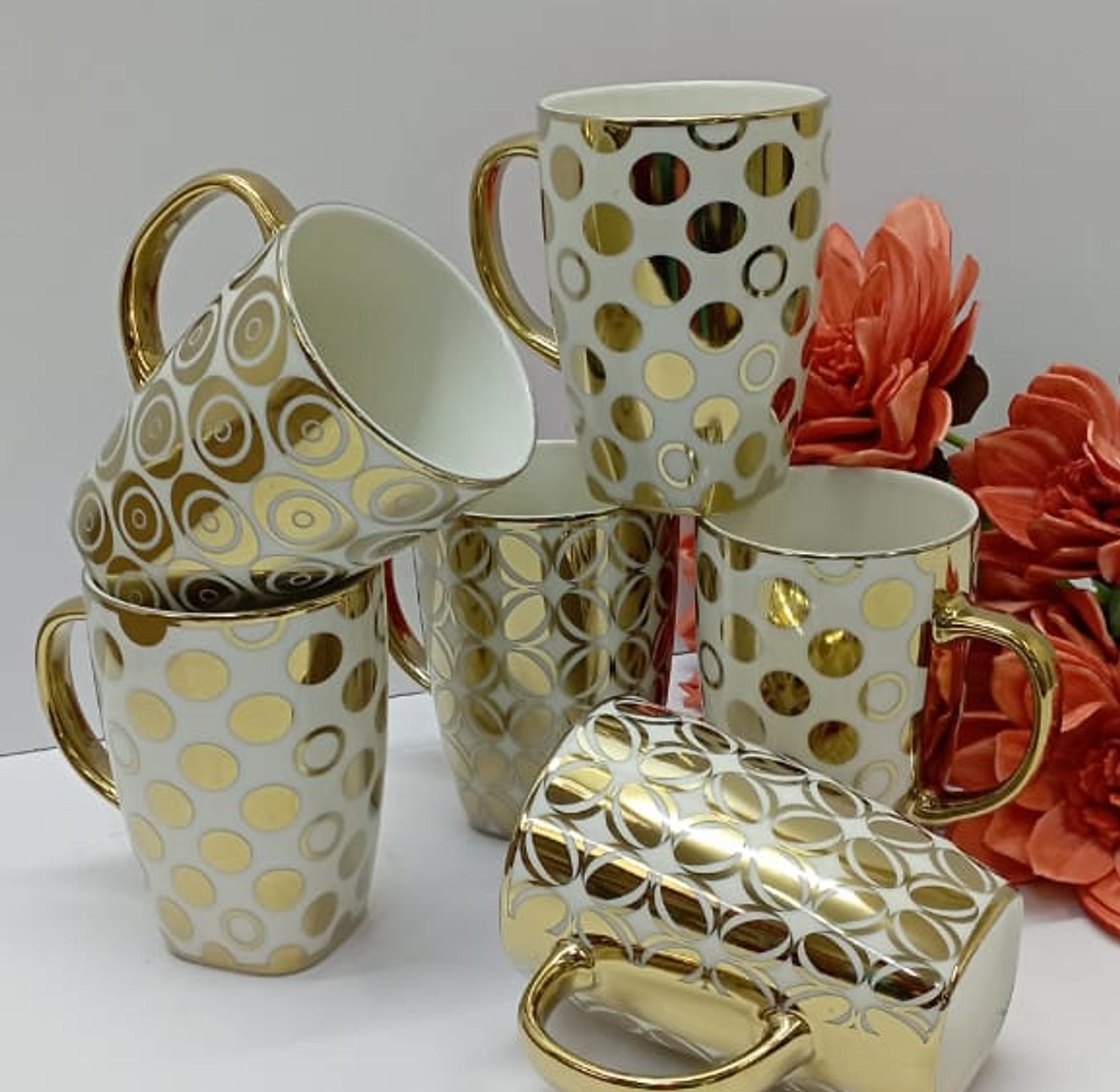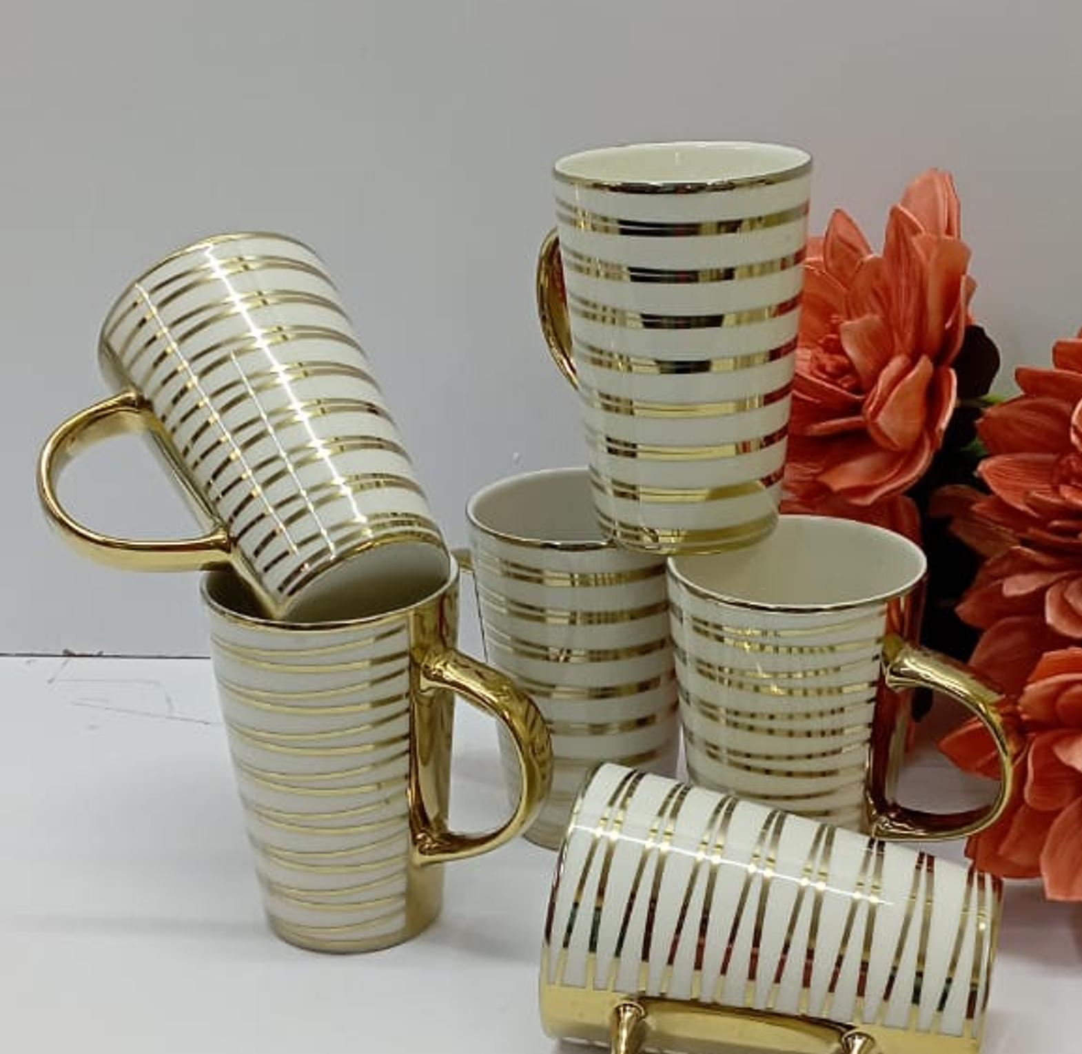KEY FEATURES Goldish Big Ceramic Coffee /Tea Mugs For serving coffee and tea Easy to clean Heavy durable ceramic material A set of 6pcs