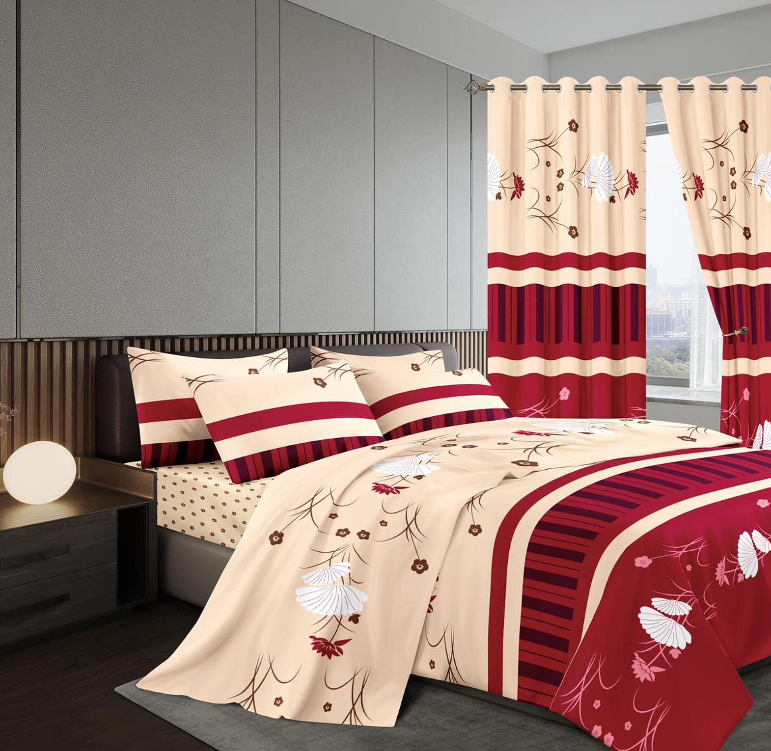 1 pc woolen duvet 1 pair ring curtain 2 pcs bedsheets 1 pc fitted 1 pc flat 2 pcs pillow cases