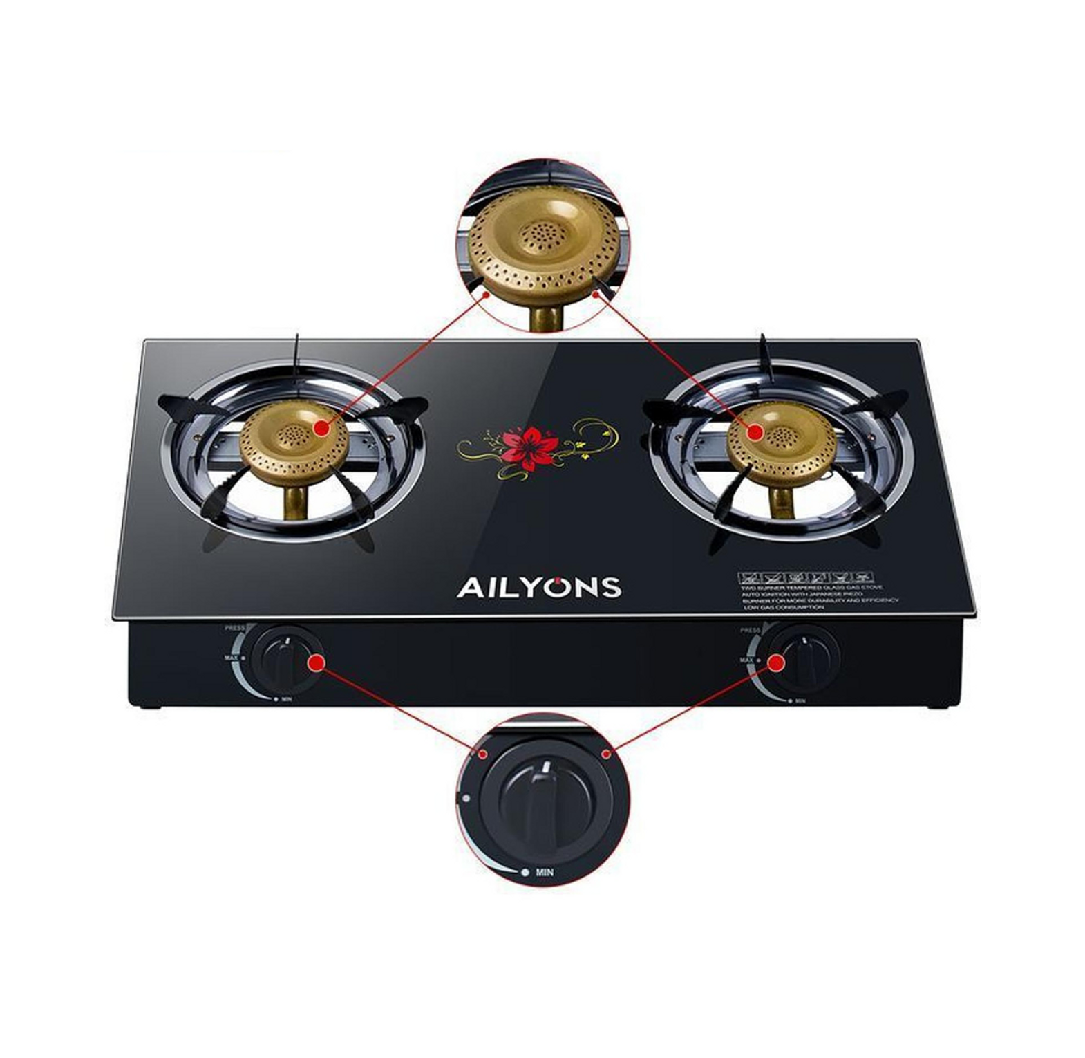 AILYONS quality Tabletop / Cooker Glass Two Burner Cooker-Auto Ignition