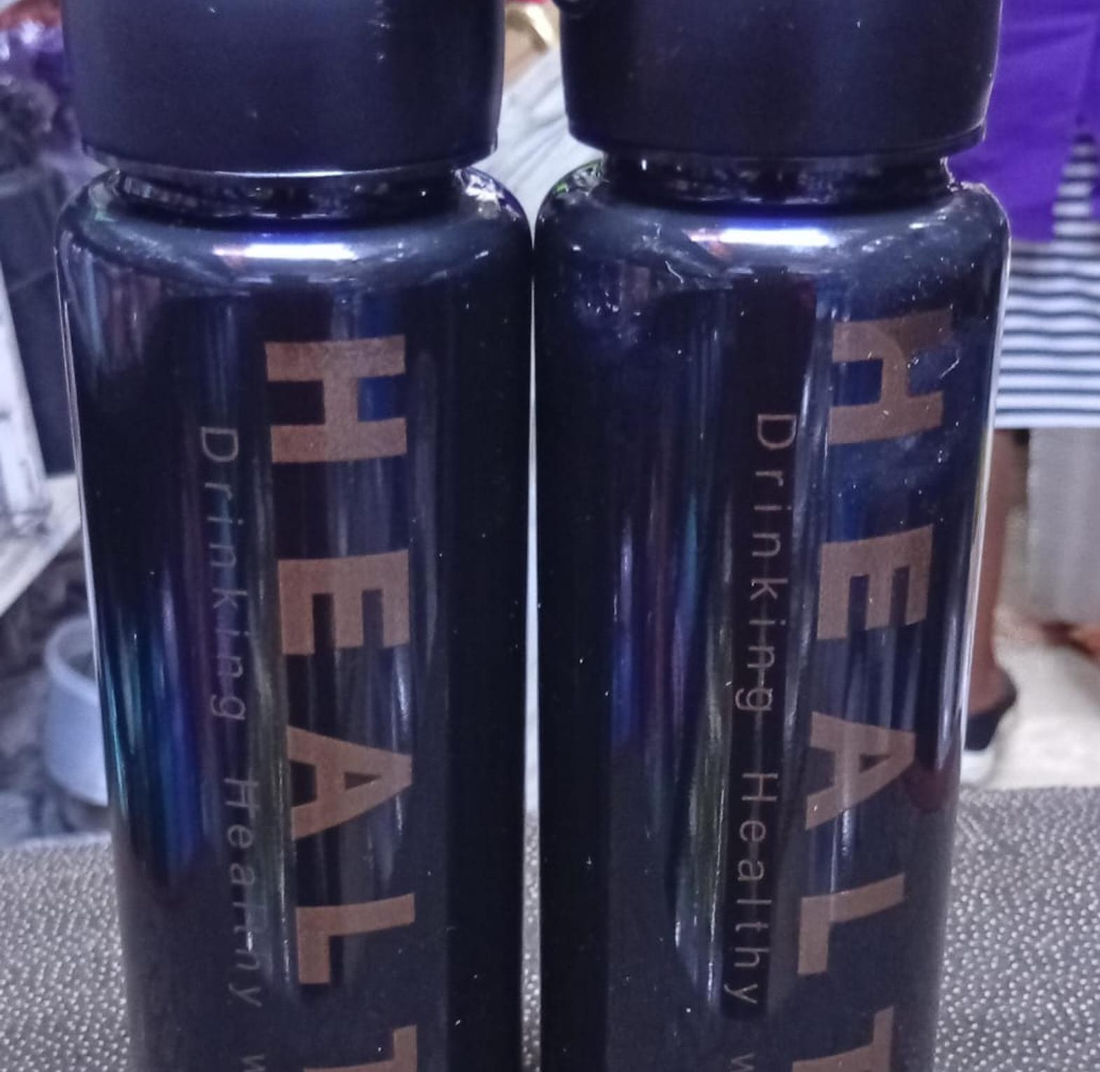 A sleek and durable black health water bottle designed to keep you hydrated while complementing your active lifestyle with its minimalist aesthetic.
