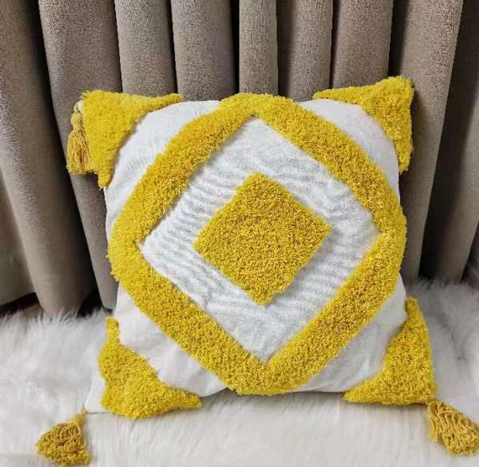 Boho vintage throw cushion cotton pillow case-yellow/white