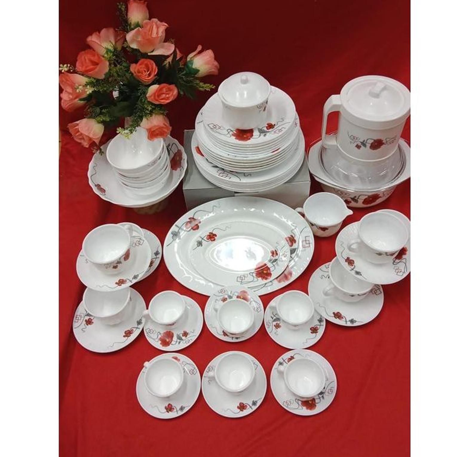 Ceramic Dinner Set 58 Pcs-white/red