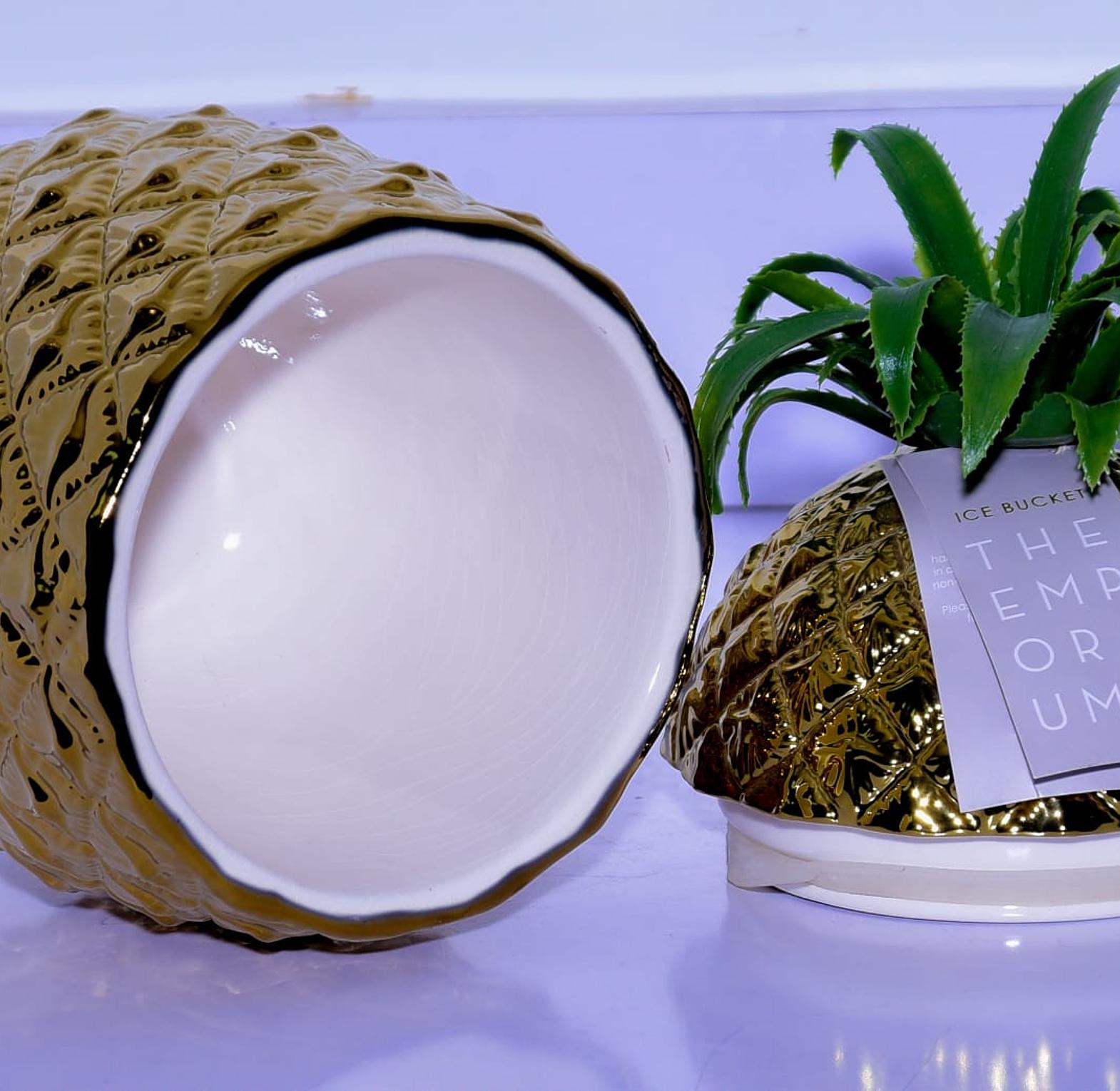 KEY FEATURES Ceramic pineapple can, charming pineapple, metal finish Simple fashion design, return to sincere natural beauty Hand-made, high-temperature firing, bring you high-quality porcelain Suit for modern home design, to meet your aesthetic, so that the home decoration of porcelain is more beautiful It can be placed in the living room, bedroom, dressing table, window, etc, It can also be given for gift to friends and family.