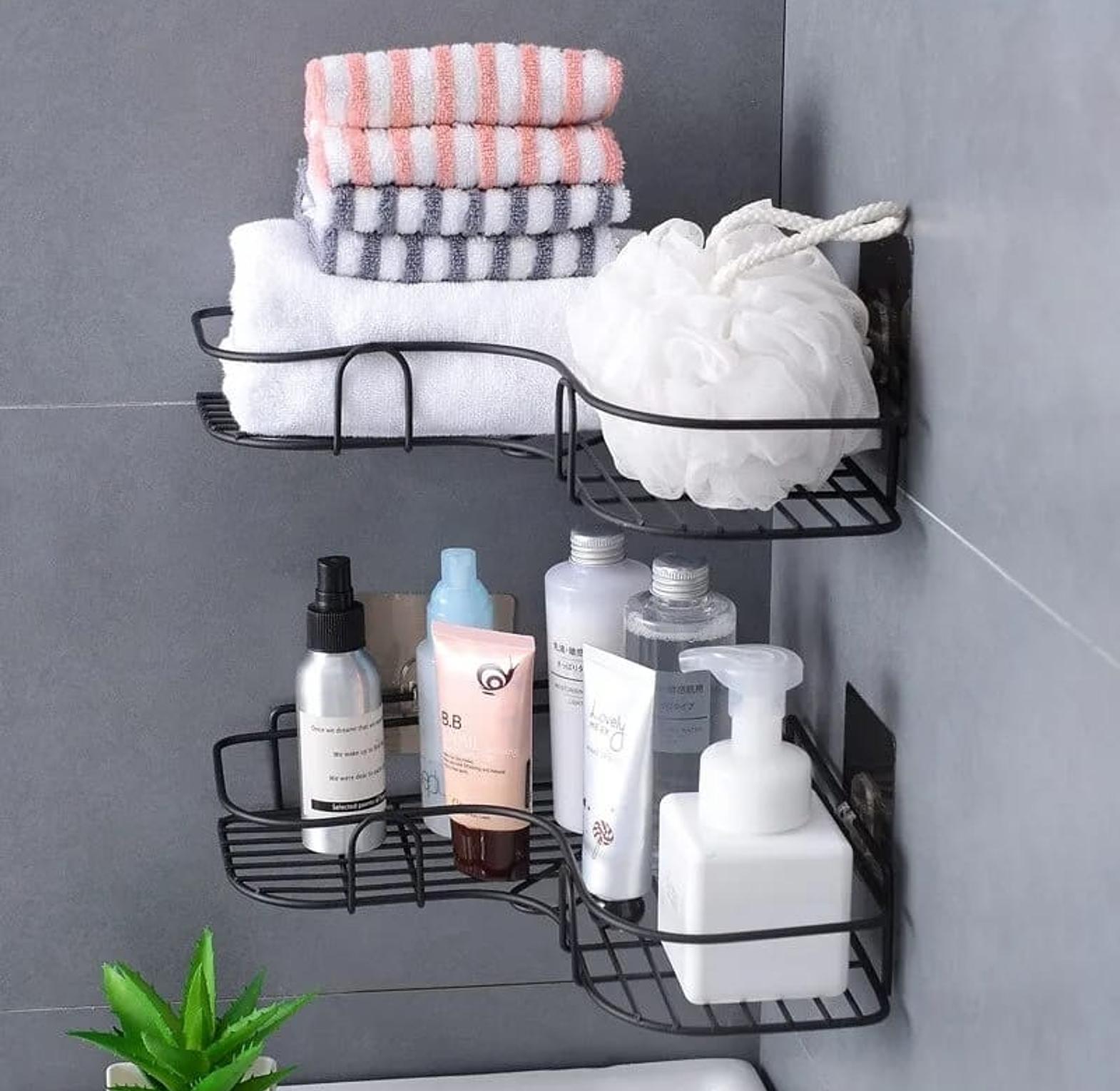 Corner METALLIC TRIANGLE shelves {bathroom//kitchen}