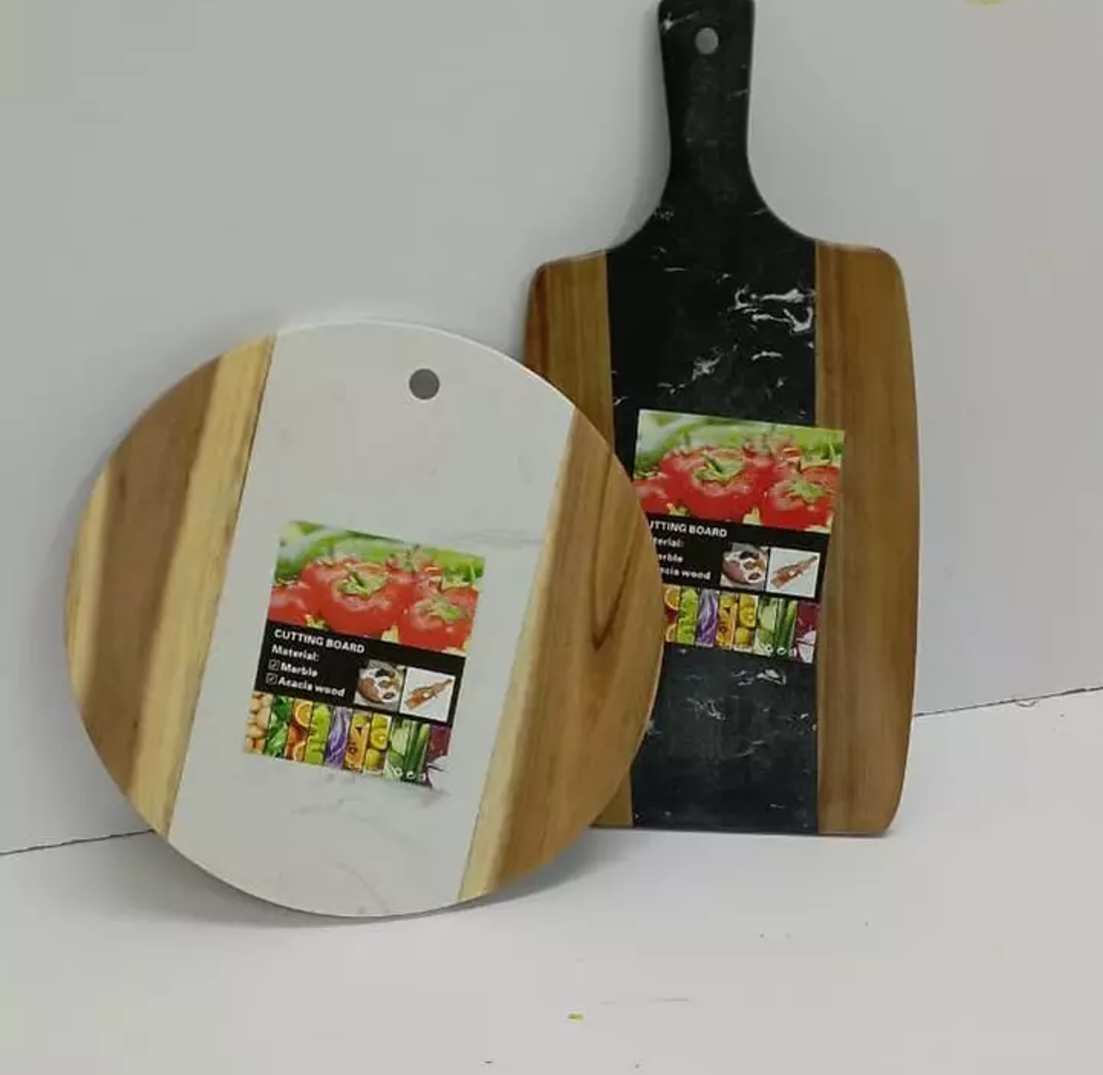stylish and functional kitchen essential that combines the durability of marble with the warmth of acacia wood, perfect for food prep, elegant serving, and entertaining.