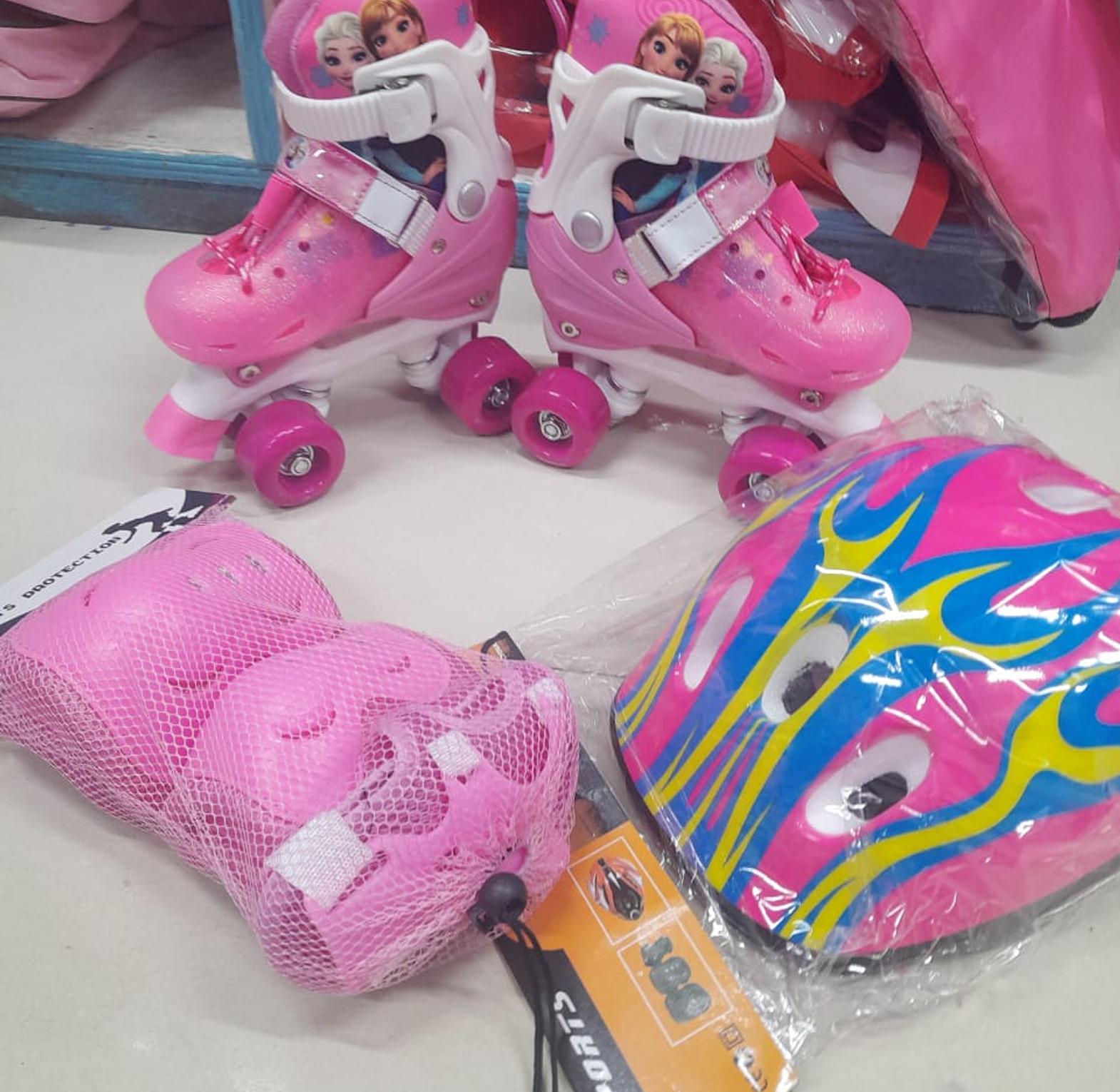 Frozen Theme skate shoe Complete set with soft helmet Gears + shoes-Size 30-34