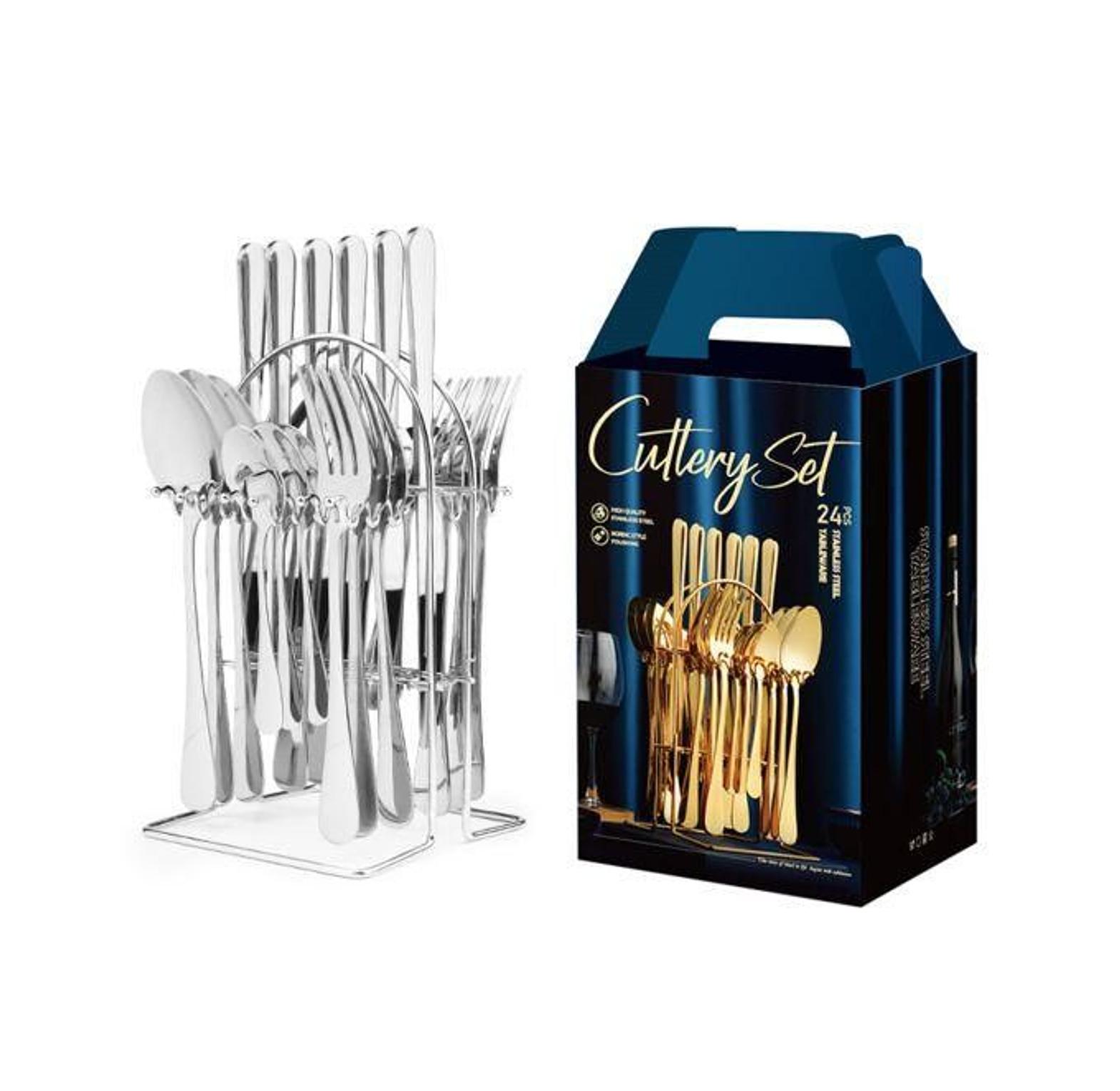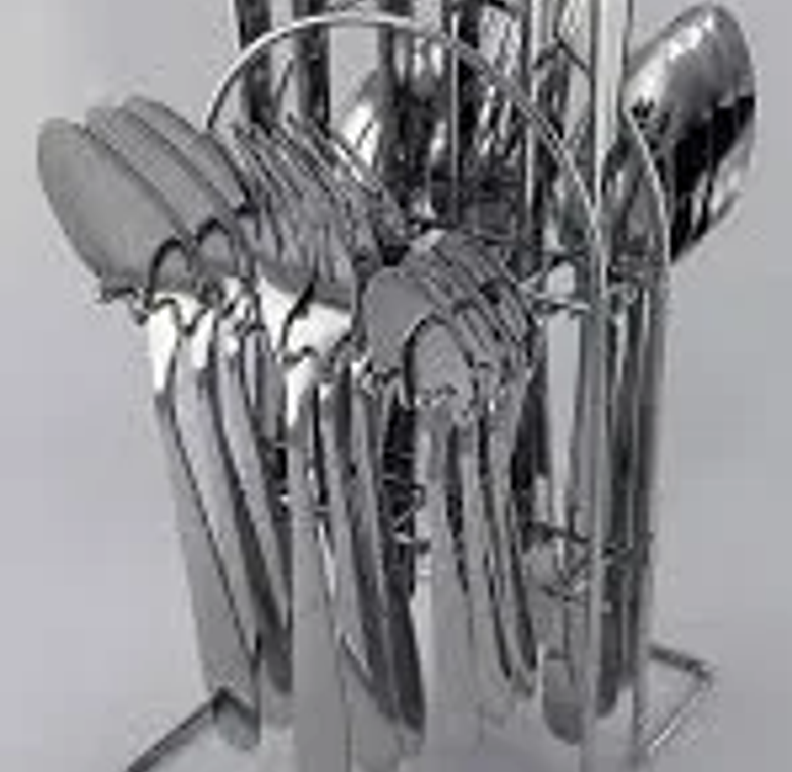 Material: Stainless Steel Pattern: Solid & Patterned Number of Pieces: 24 Dish washer safe: Yes Ideal for home, office, restaurants, hotels and other eateries Ideal gift on occasions.? Set includes:? 6 x Dinner Knives 6 x Dinner Forks 6 x Dinner Spoons 6 x Tea Spoons