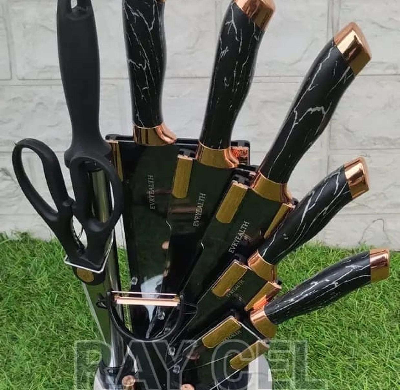 Stainless Steel Kitchen Cutlery Knife Set with Rotating Block Stand