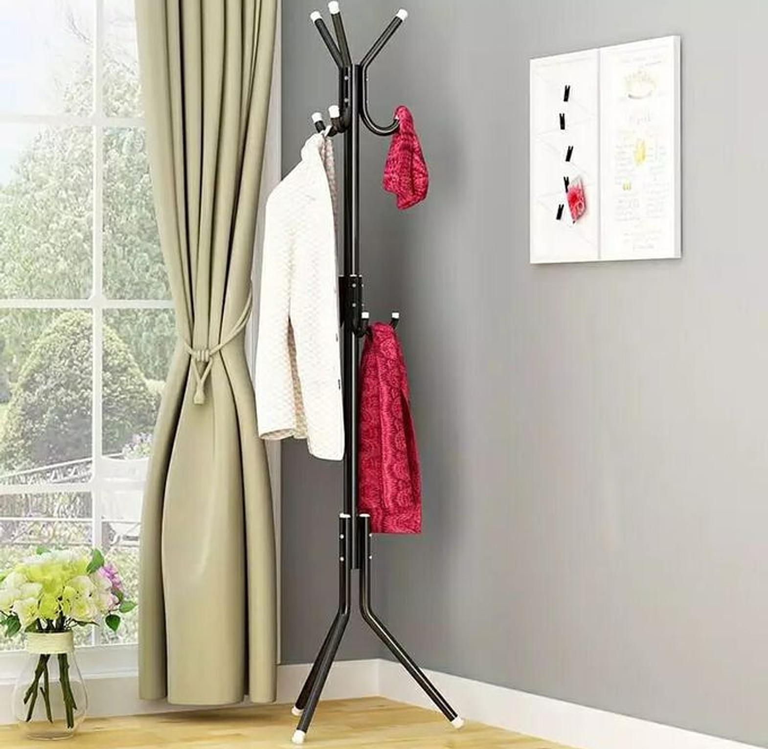 Strong and durable metallic build. Multifunctional rack, holds hats, coats, handbags. Stylish standing style design Easy to assemble. 3 Base legs for sturdy standing No scratches on the floor. Multiple hooks provide plenty of area for hanging without taking up much space. Great for both home and office