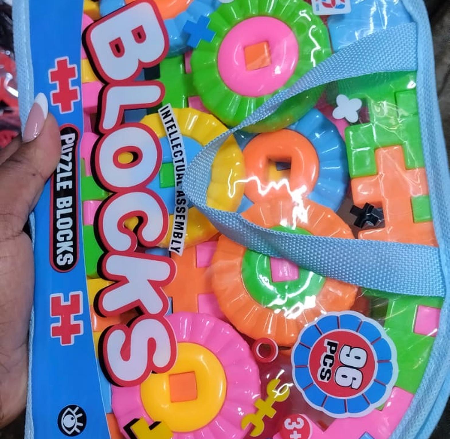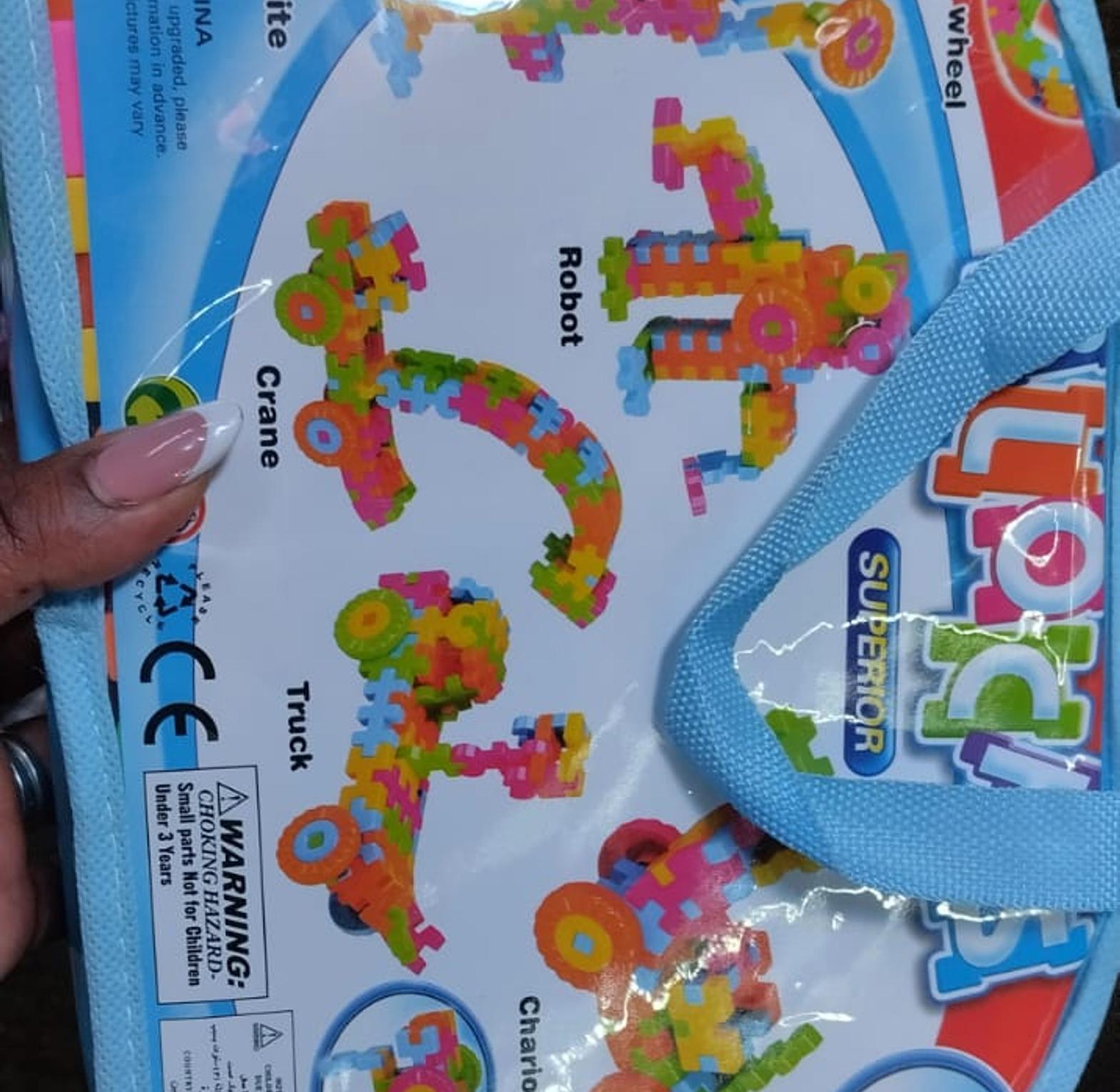 KEY FEATURES Recommended age 3+ years Zippered packet with a handle, which makes it very convenient for portability and storage Bright and colorful Totally Harmless for your child with non toxic plastic material used. The Pieces nicely fit into each other.