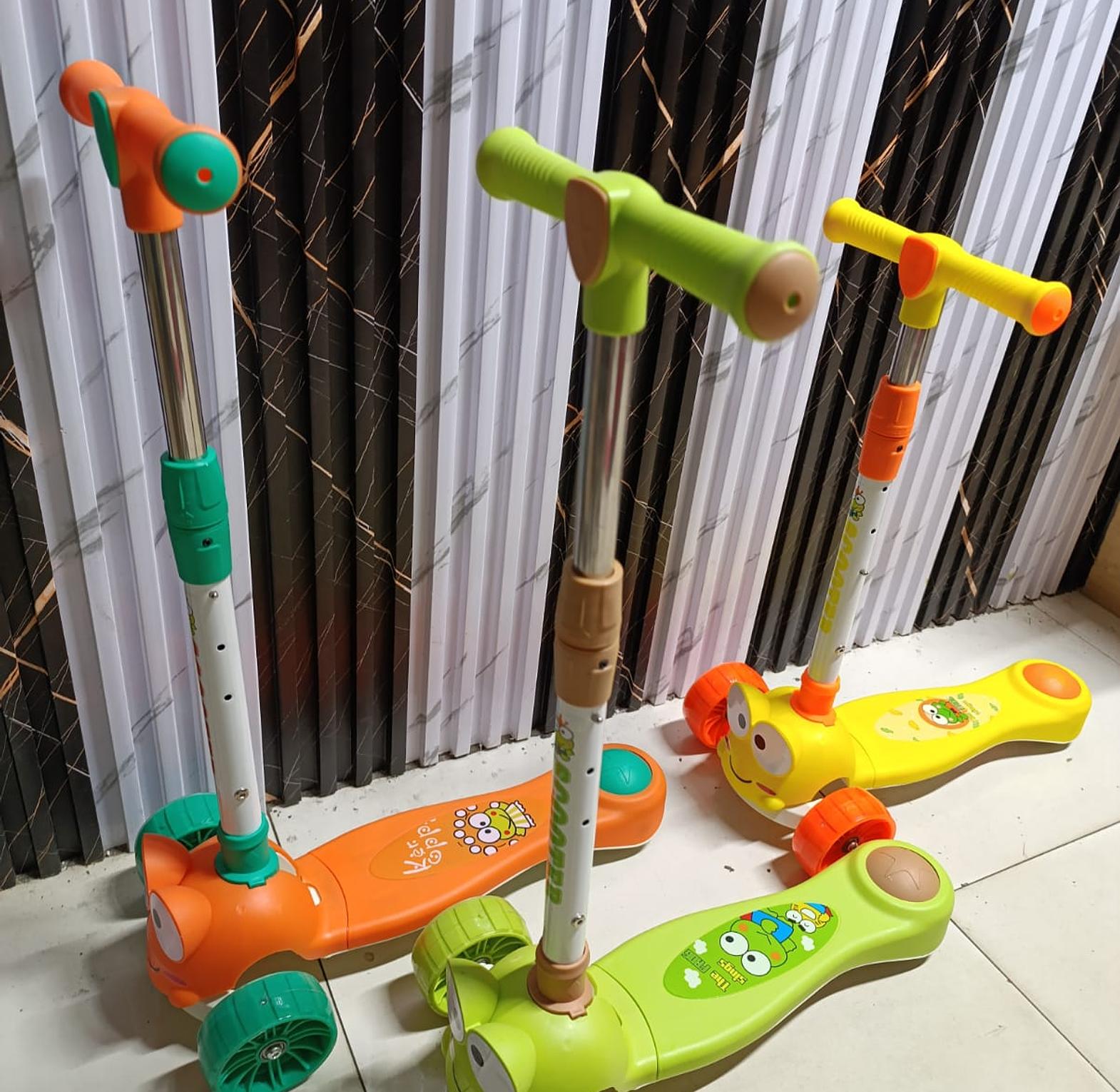 KEY FEATURES √ 3-Wheel design for greater stability and safety, simply hop on and start scooting √ Smooth and quiet "lean-to-steer" fun ride √ Strong anti slip deck with built-in suspension for a safe and stable ride √ Rear double-wheels brake for safe and speedy stopping √ Clear urethane wheels with built-in LED flashing light √ Removable handle bar for easy travel and storage √ 4 adjustable T-bar height accommodates children as they grow Age: 2-15