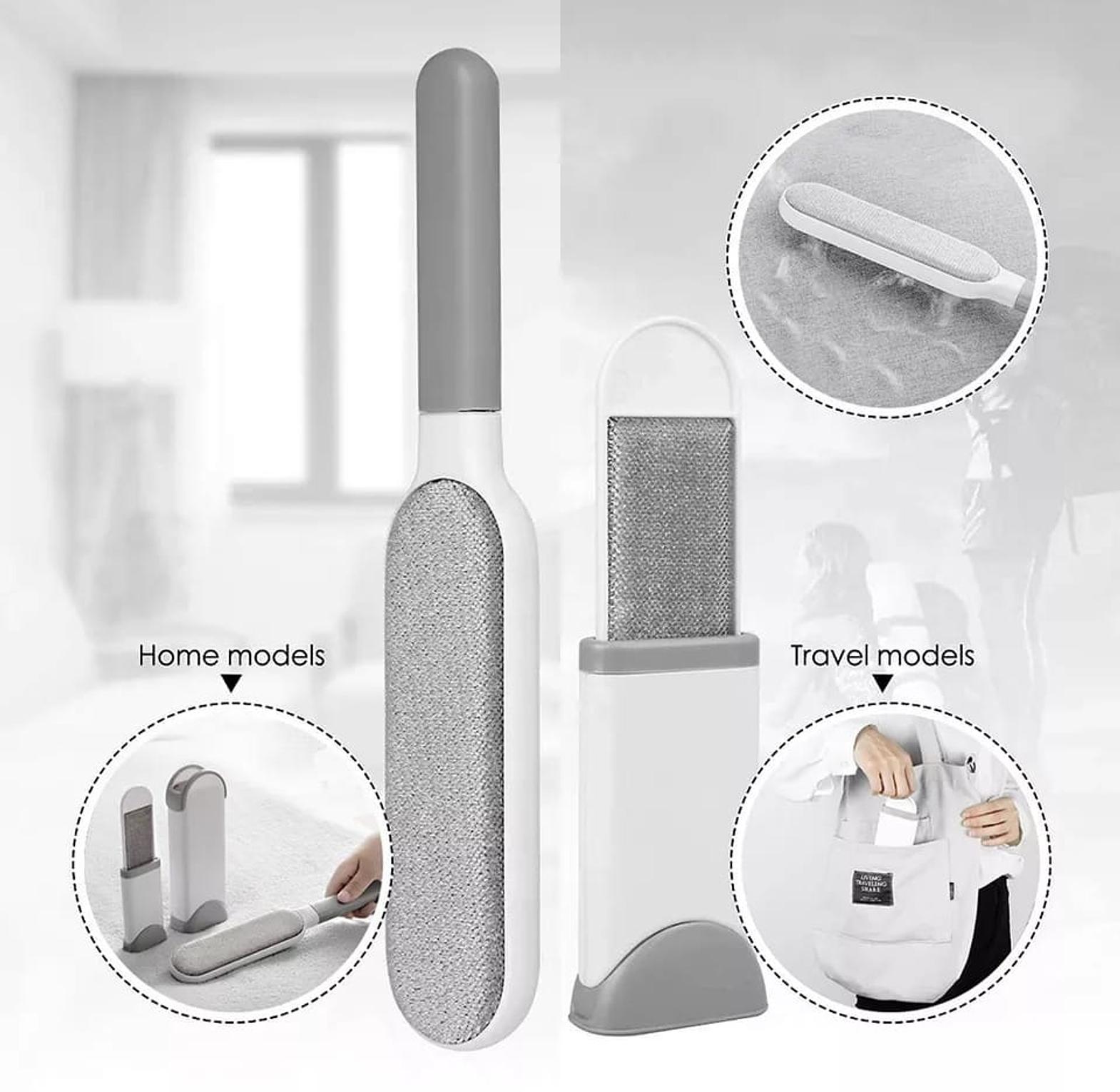 Effortlessly remove lint, pet hair, and dust from clothes and furniture with this double-sided, self-cleaning, and reusable brush built for everyday use.