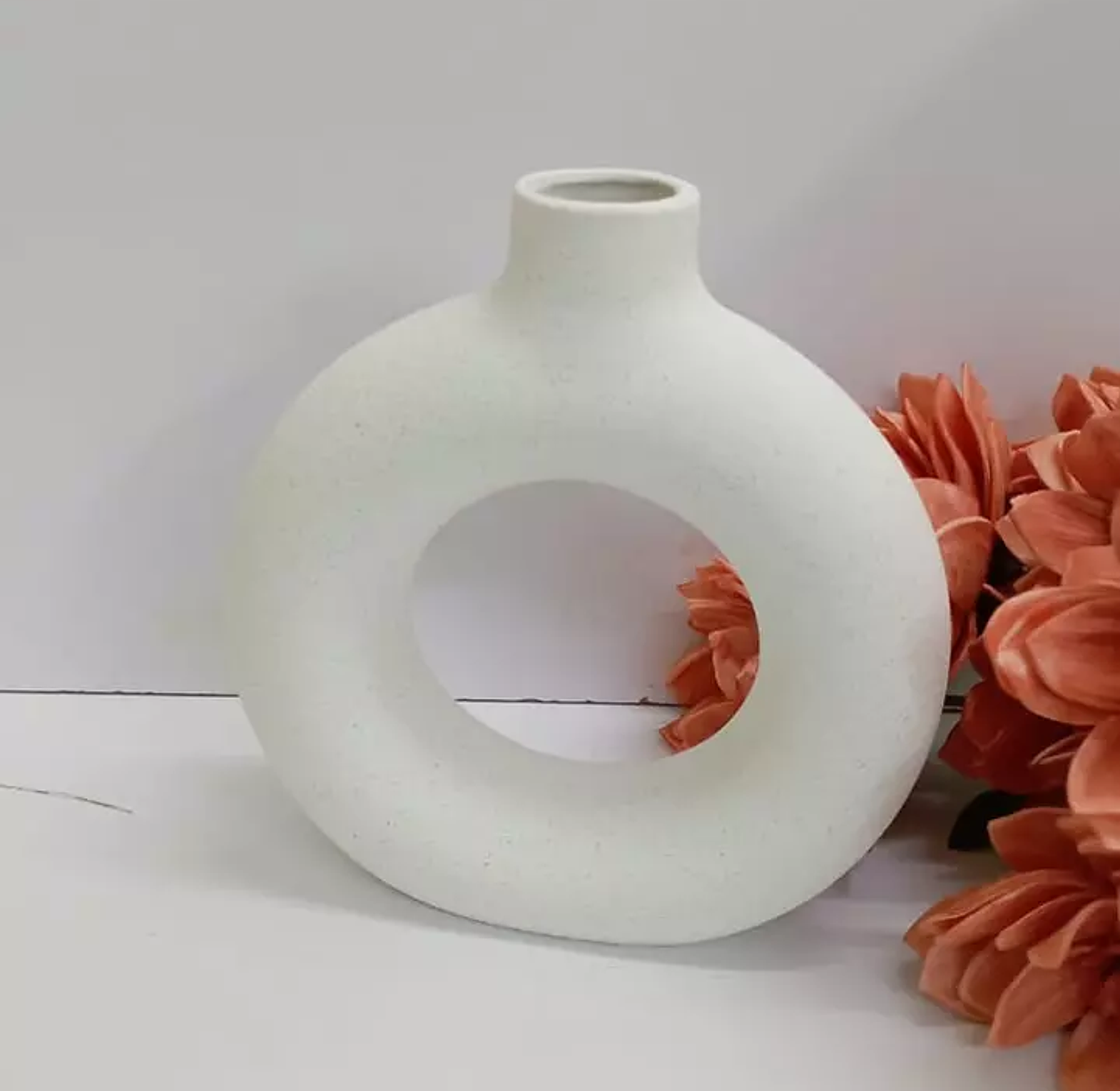 WHITE DOUGHNUT NORDIC CERAMIC SHAPED VASE