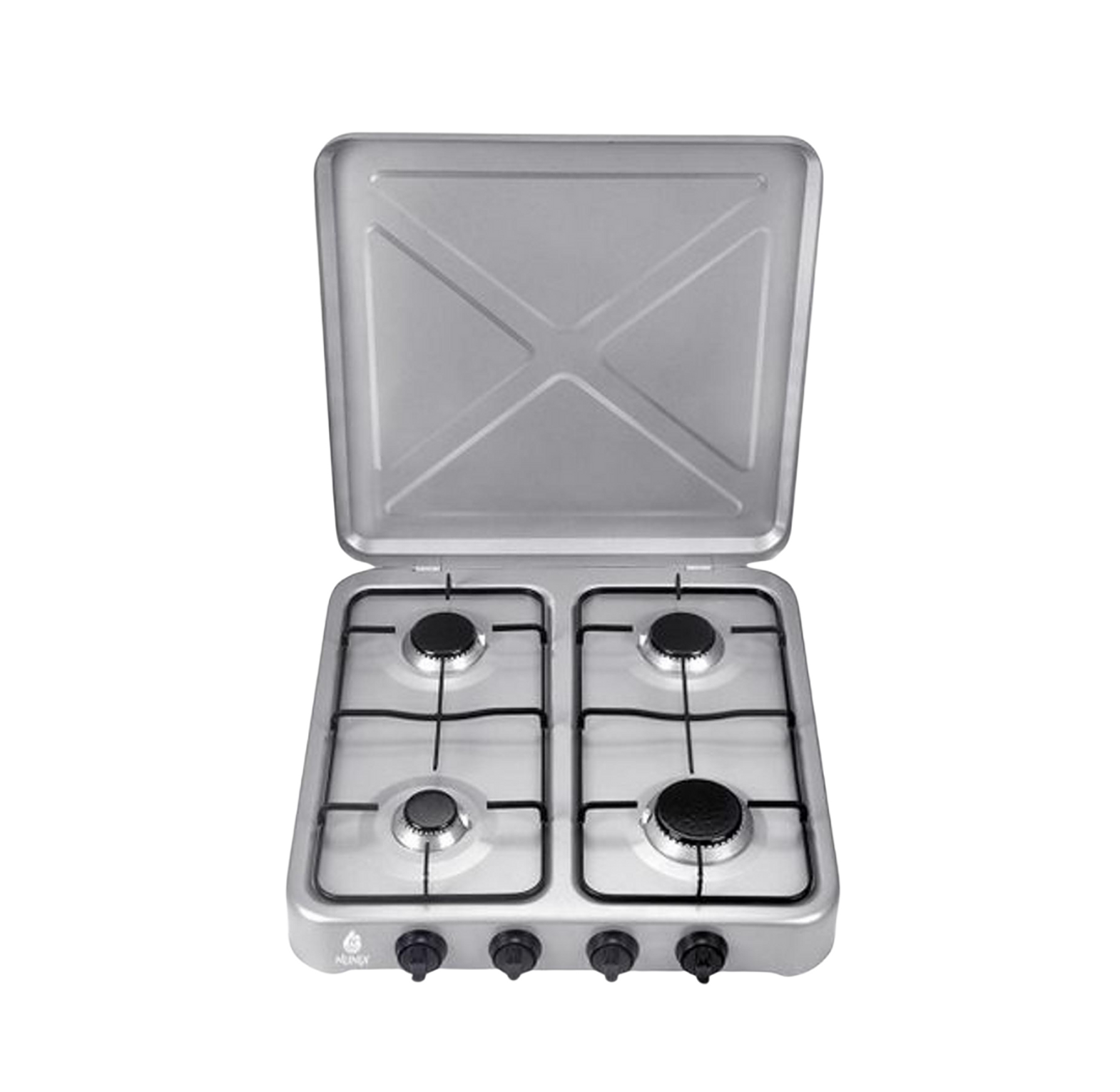 KEY FEATURES 4 Burner Table Top Gas Cooker Manual Ignition Table Top Design Metal Lid Top Easy to Clean