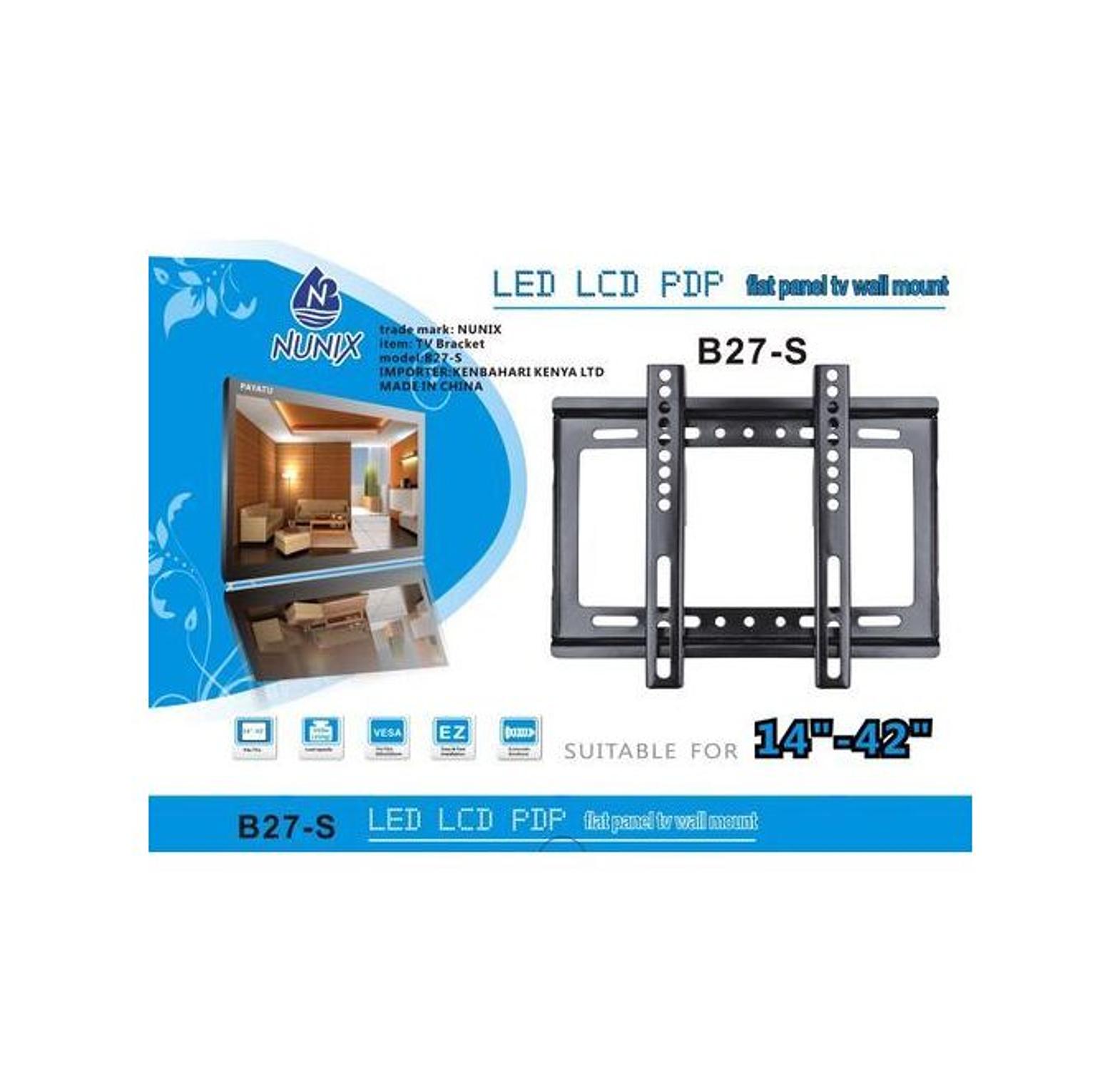 Wall Mount Bracket for HDTV Flat Panel TV Economical and simple structure design TV bracket Slim profile fixed wall bracket ideal for LED LCD PLASMA TVs Fits most 14-42″ flat-panel TV Black color, Cold Plate Steel construction Durable Scratch-Resistant Finish It’s ideal for self-assembly.