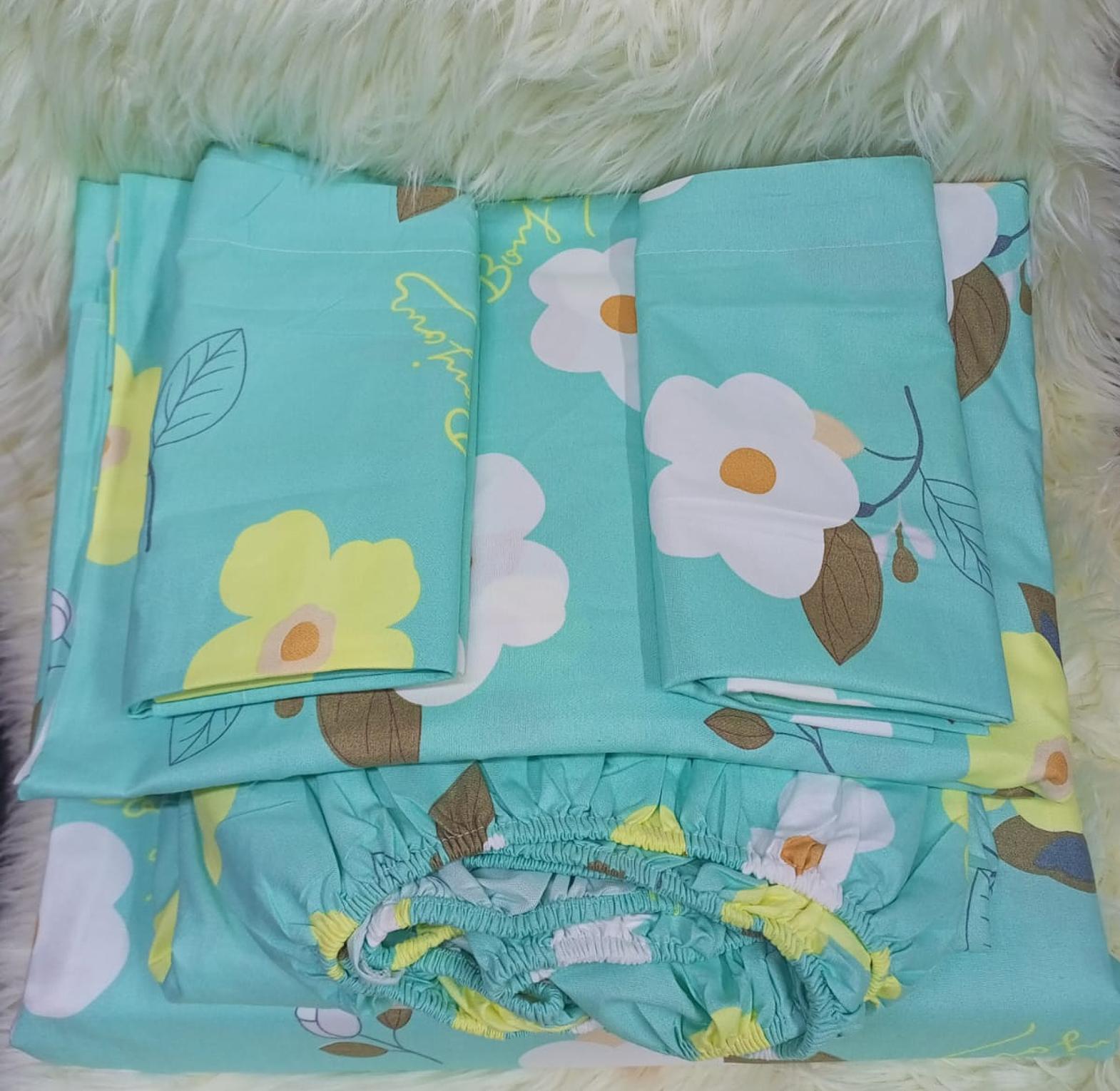 Pattern 5 pc mattress cover; Pattern and white ✨1 pc fitted bedsheet (mattress cover) ✨2 pcs flat bedsheets ✨2 pillow cases ▶️6x7 💫 Cotton