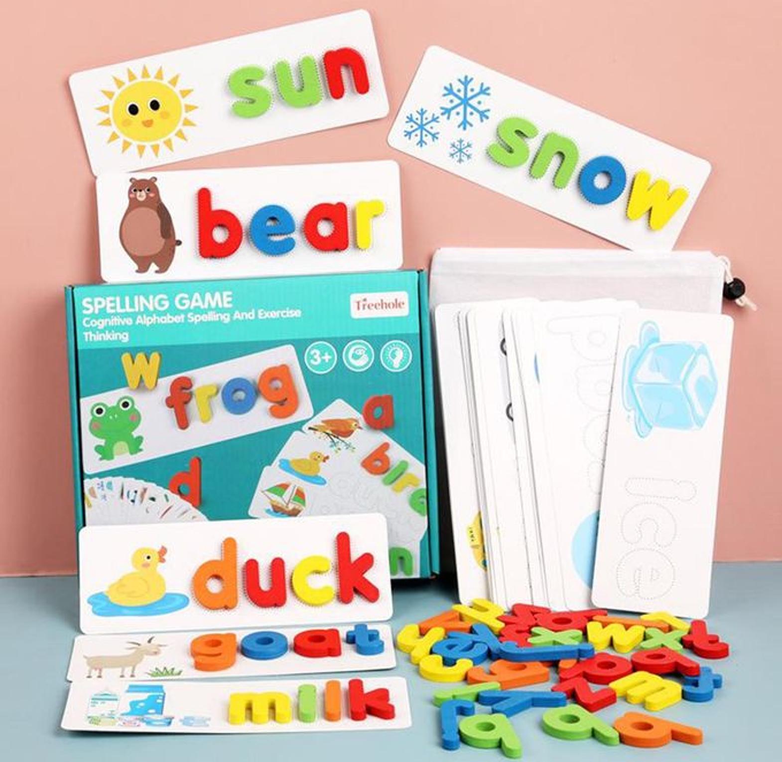 Spelling Learning Toy Wooden Alphabet Flash Cards Word Match Game
