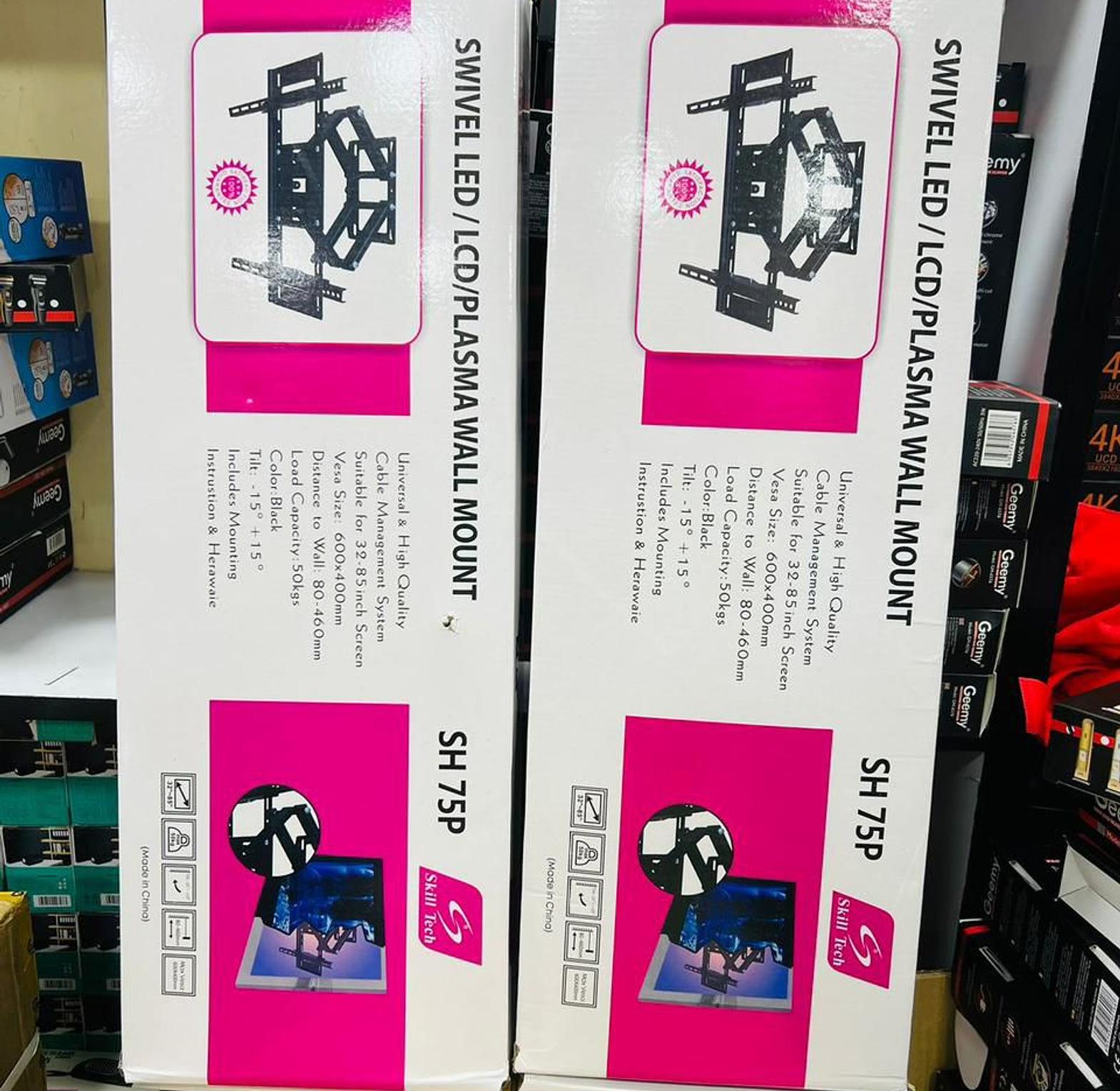 Key Features Screen Size: 40"-85" Max VESA: 200x200 to 400x600mm Loading Weight: 50KG Adjustable angle: Swivel 120 degrees, Tilt +/- 15 degrees Material: Cold-rolled Steel Finish: Electrostatic painting
