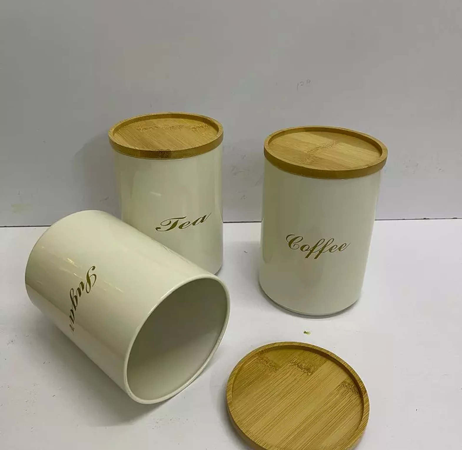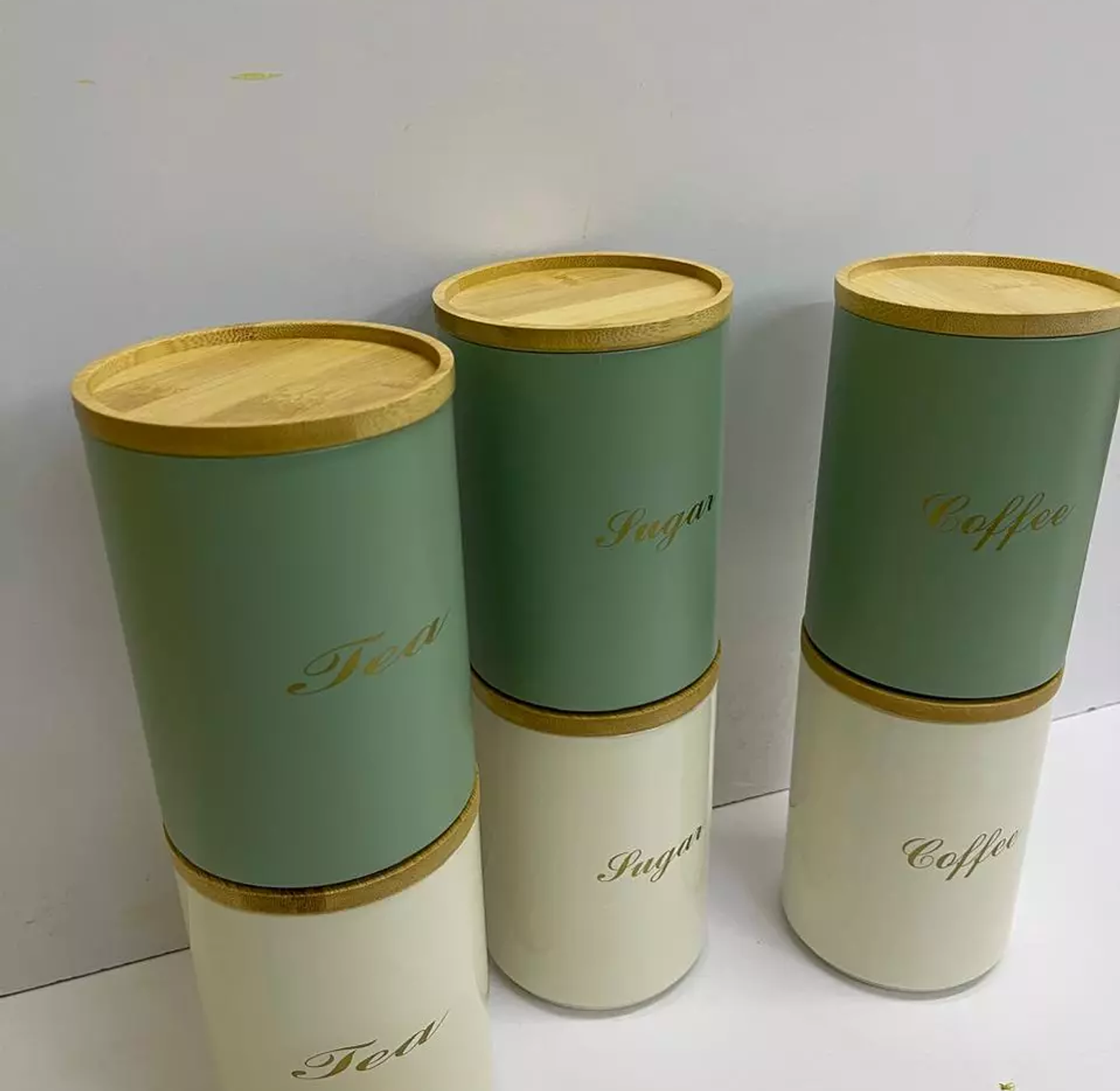 White and Green Sugar, Tea, Coffee canisters
