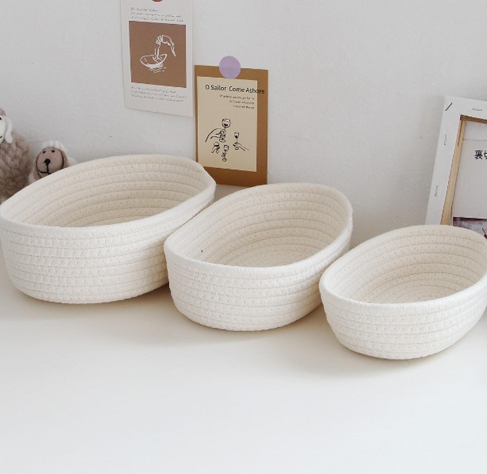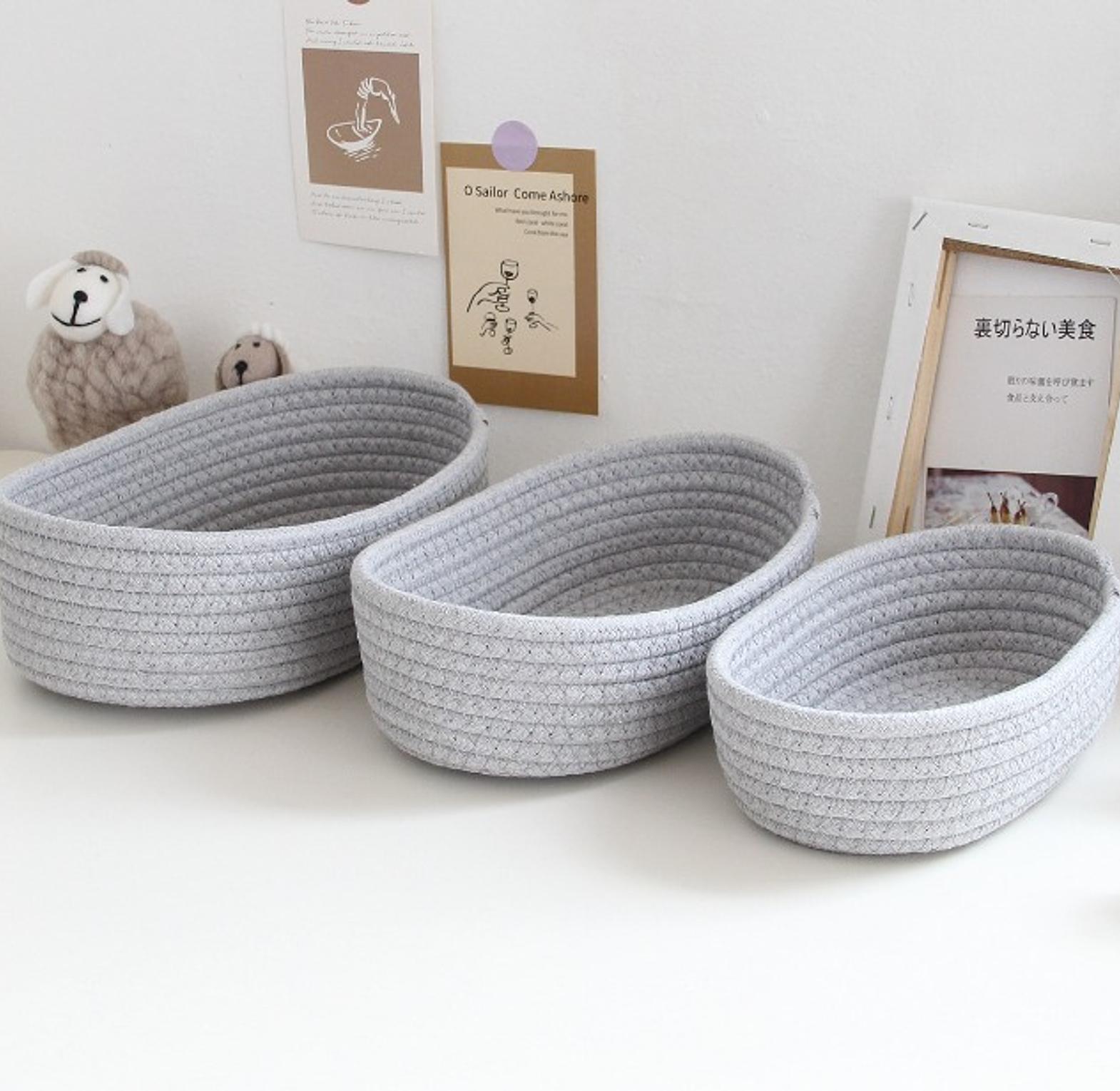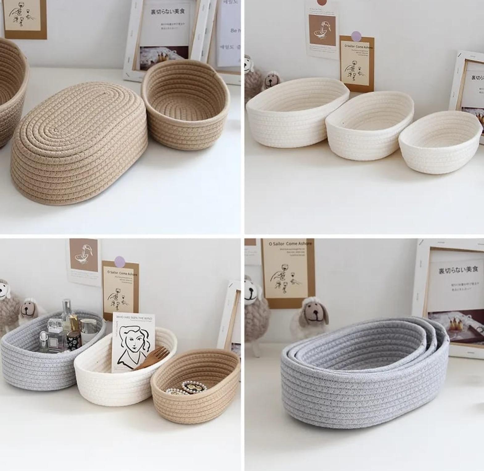 Woven Nordic Cotton Rope Storage Set of 3 Baskets Organizer Desktop Sundries