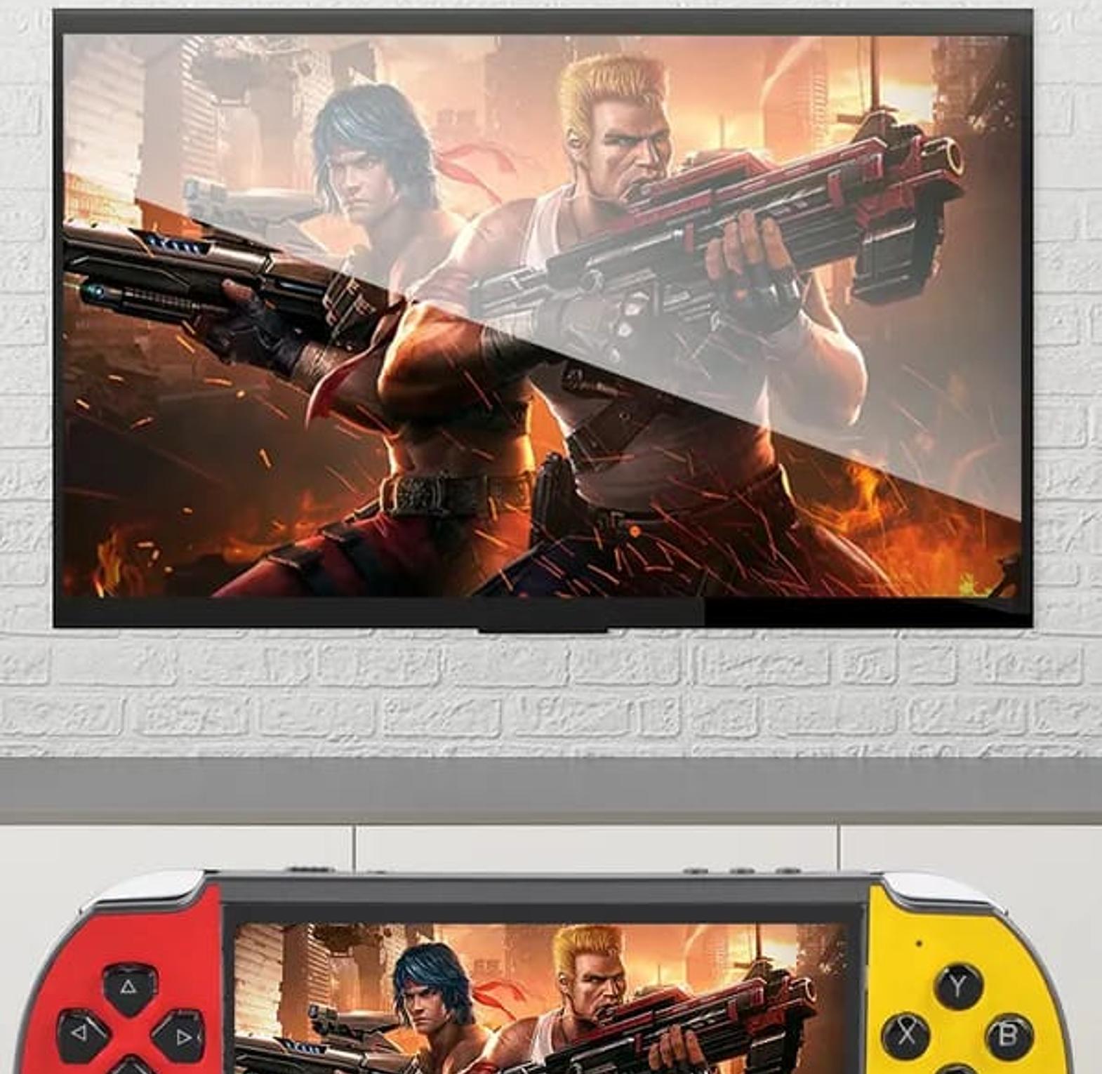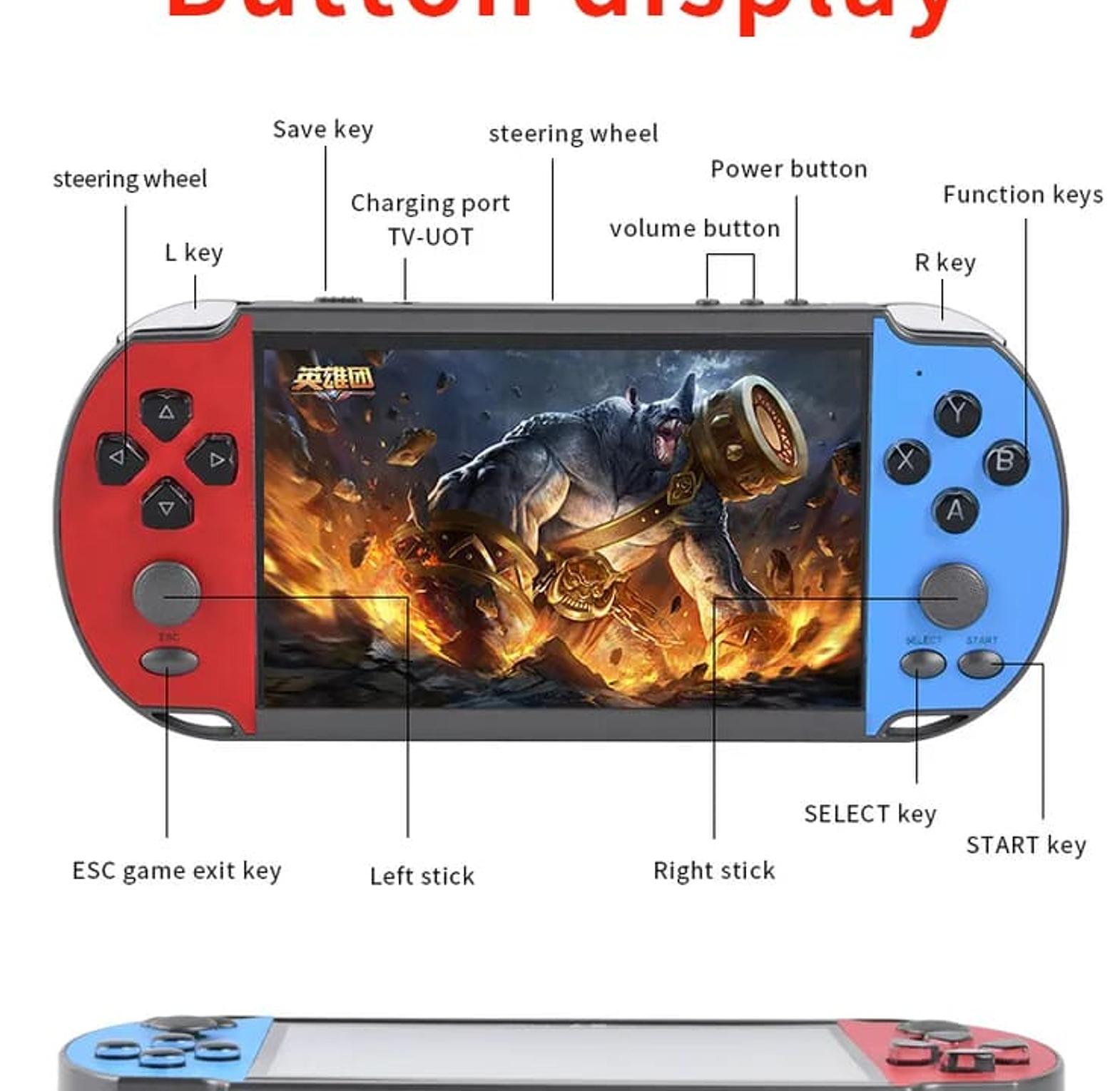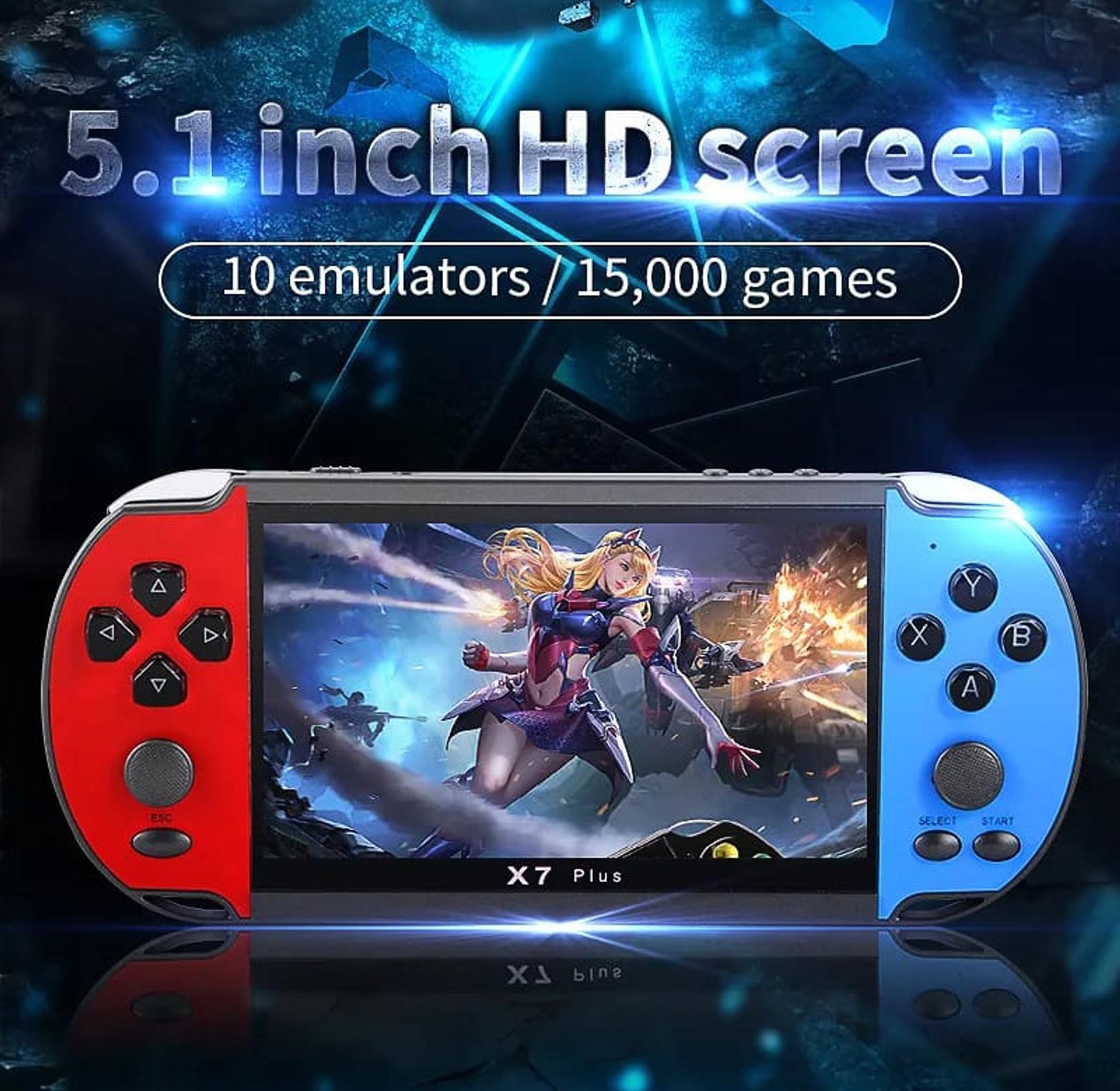 X7 plus handheld game console 5.1 inch screen, in-built 15,000 games, support TV output, supports music playing,video playing,e-book,stopwatch