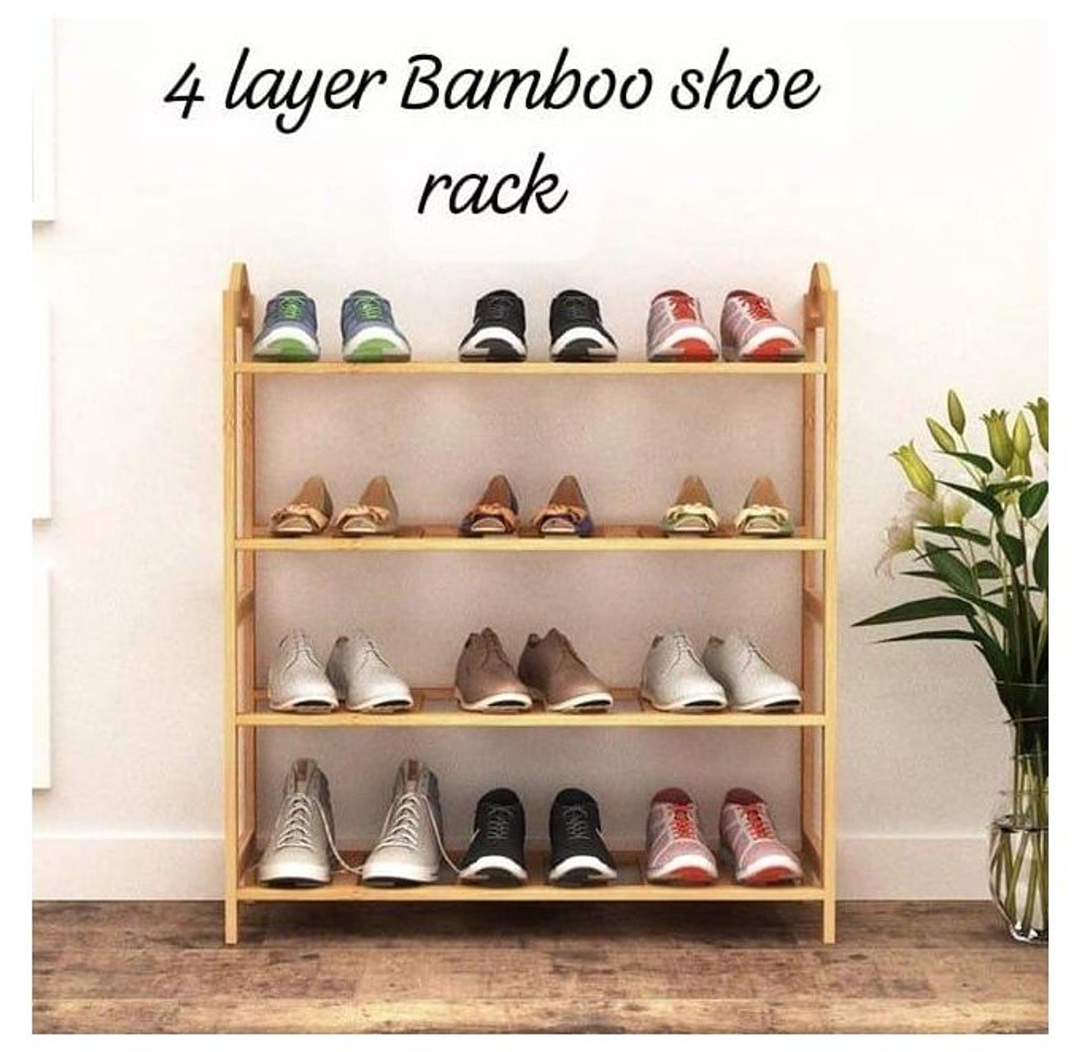 KEY FEATURES Four-tier slatted shelves make shoes breathing from the gaps, preventing any odor. dampproof and mothproof. Material: Bamboo Layers: 4 Layers Color: Brown
