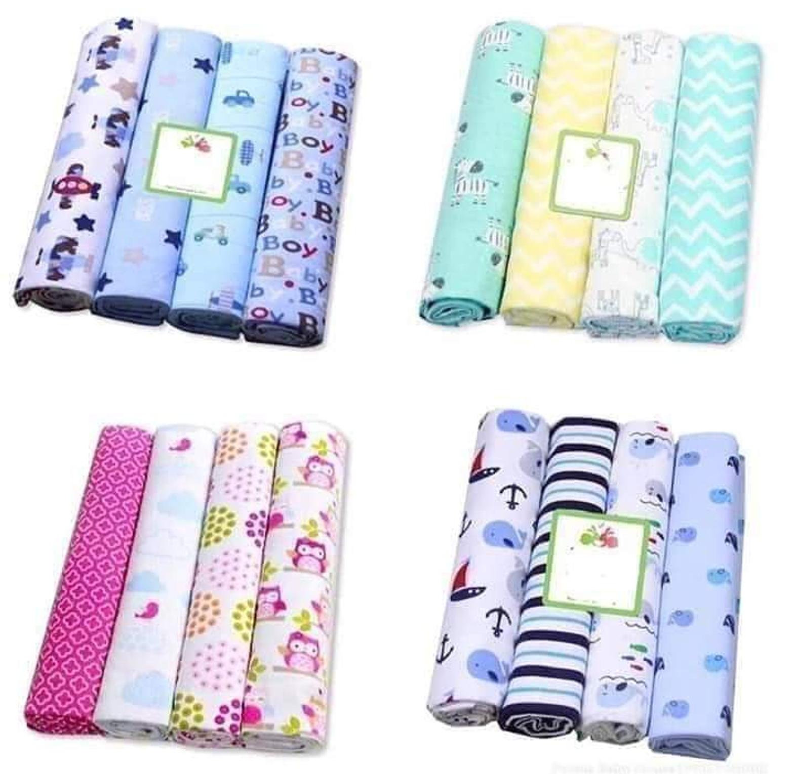 Keep your baby warm, cozy, and comfortable with this 4-piece set of ultra-soft cotton flannel receiving blankets perfect for swaddling, cuddling, and everyday use.