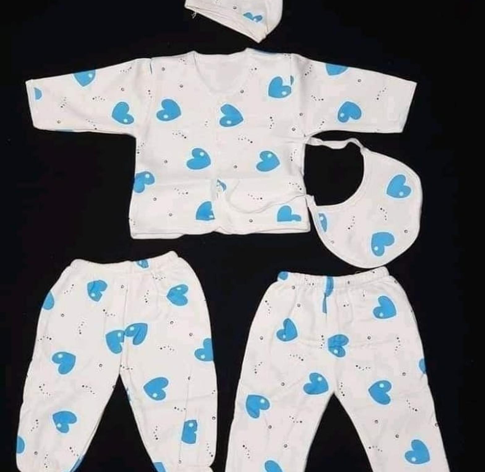 5 Pcs Newborn Unisex Receiving Set-White printed blue