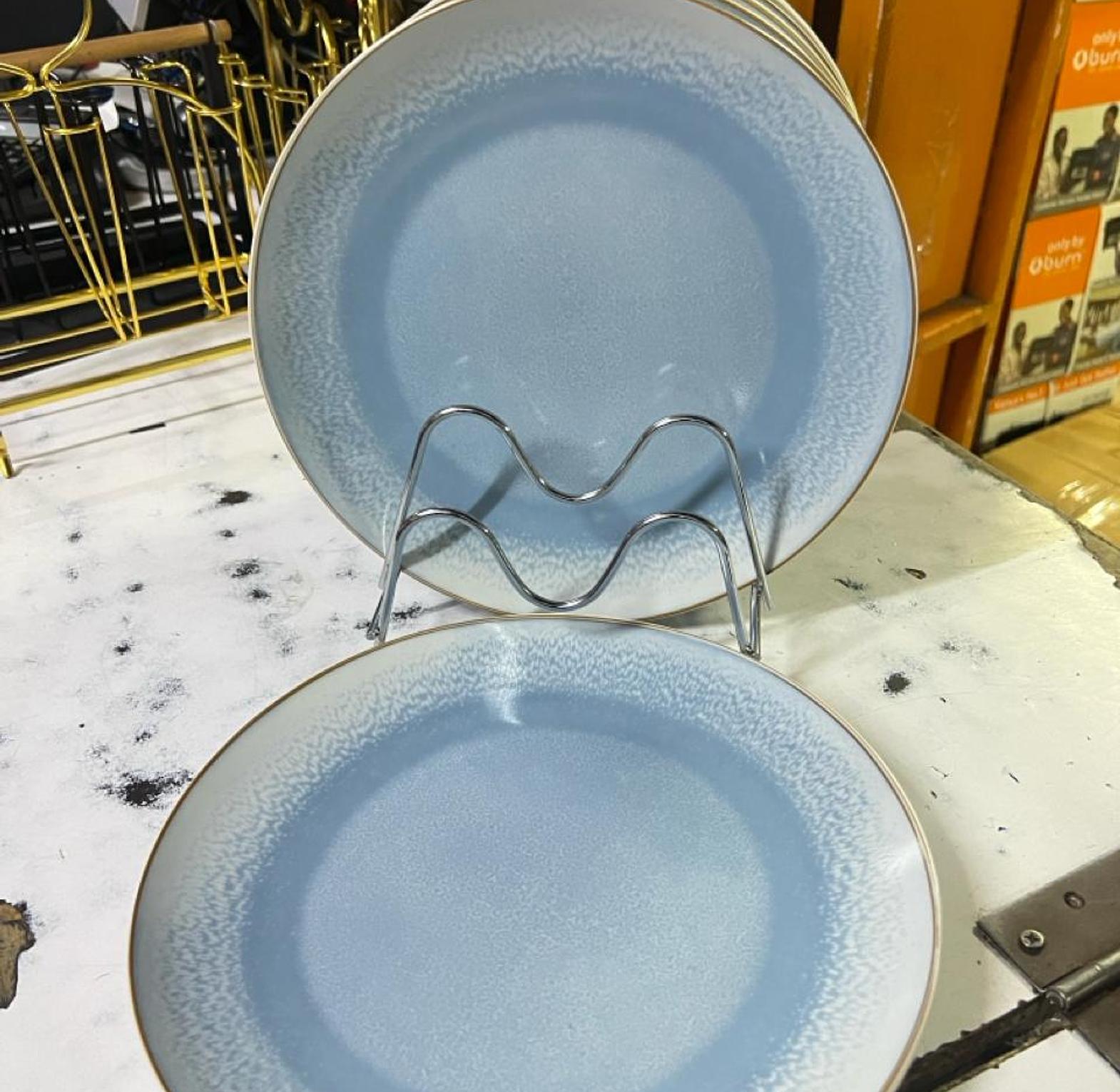 6 pcs ceramic diner plates blue 10.5 inch