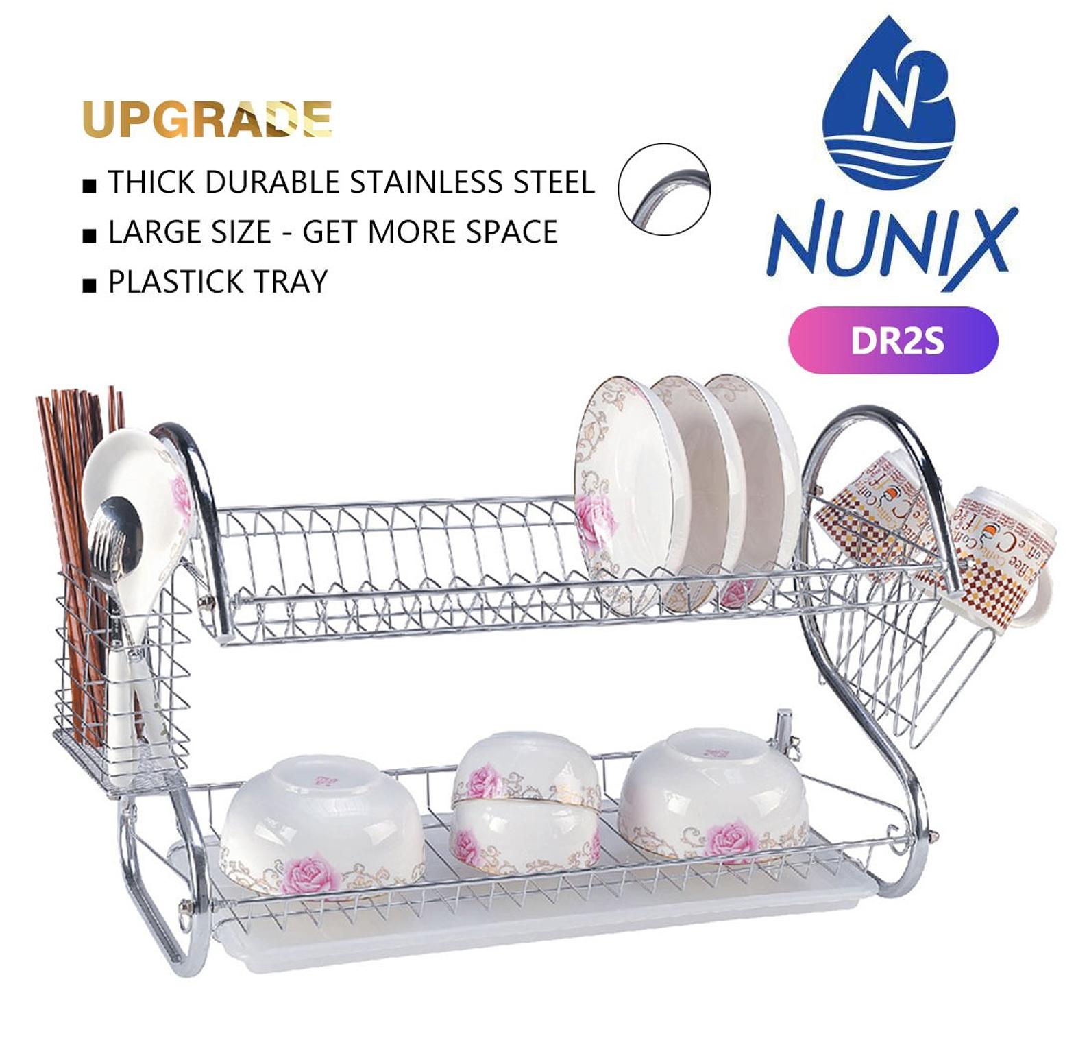 Nunix Dish Rack Kitchen Utensils/ Organizer with Drainboard-Silver