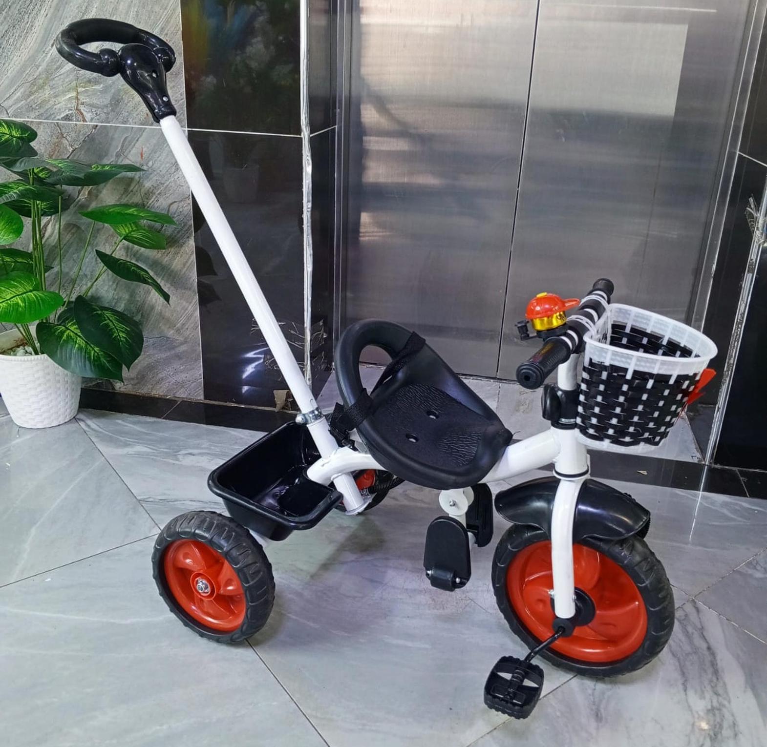 A fun and practical tricycle with a push handle, designed to provide both independence and safety for young riders while offering parents easy control.